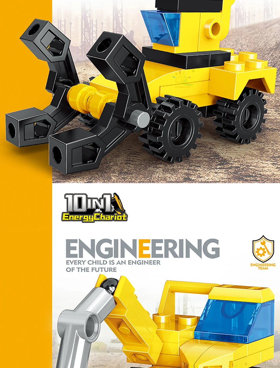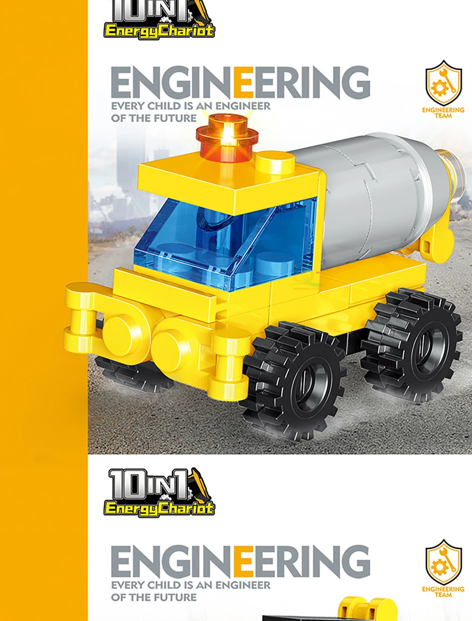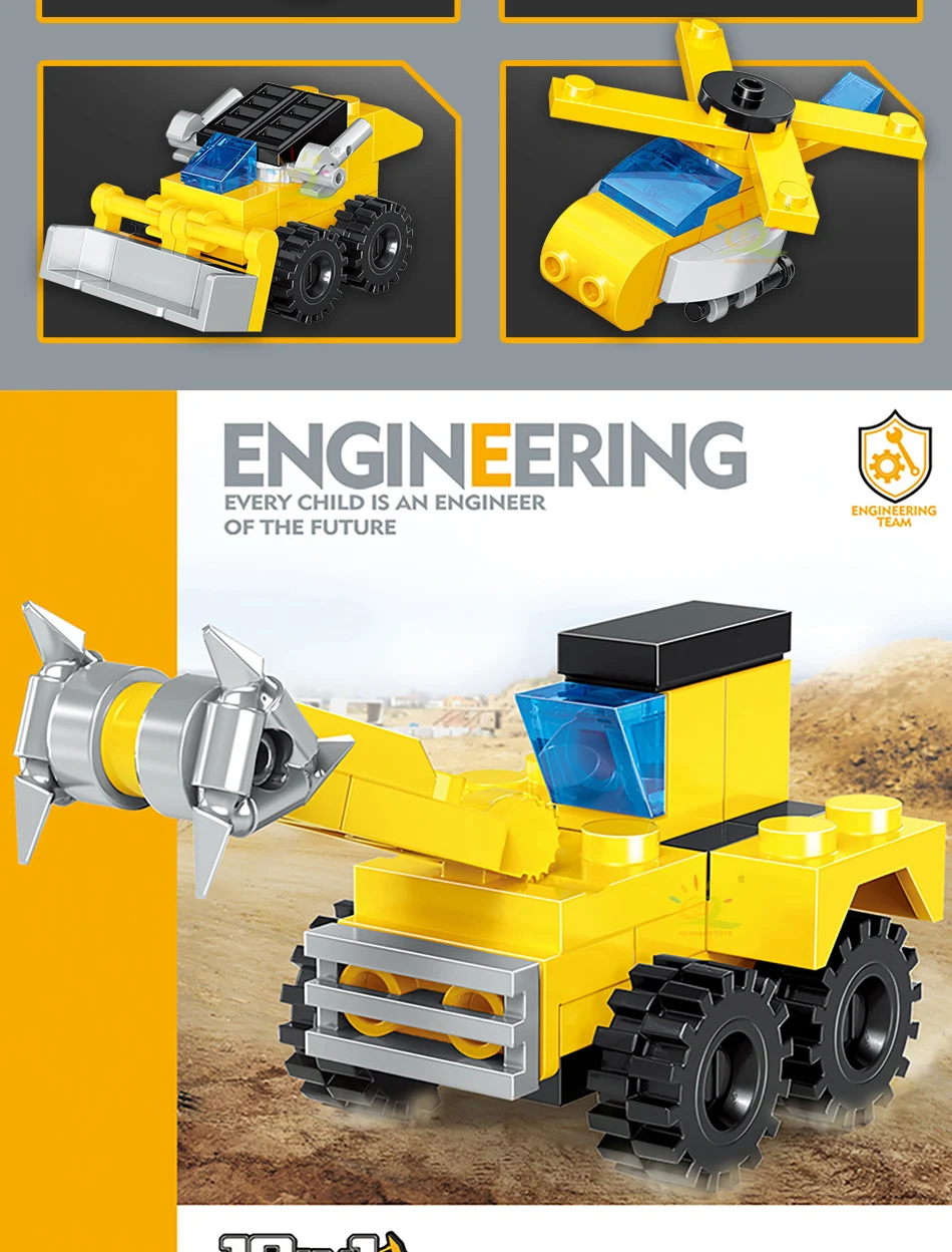 HUIQIBAO Random 1 PC Car City Multifunctional Engineering Vehicle Building Blocks Boys DIY Excavator Bulldozer Construction Toys