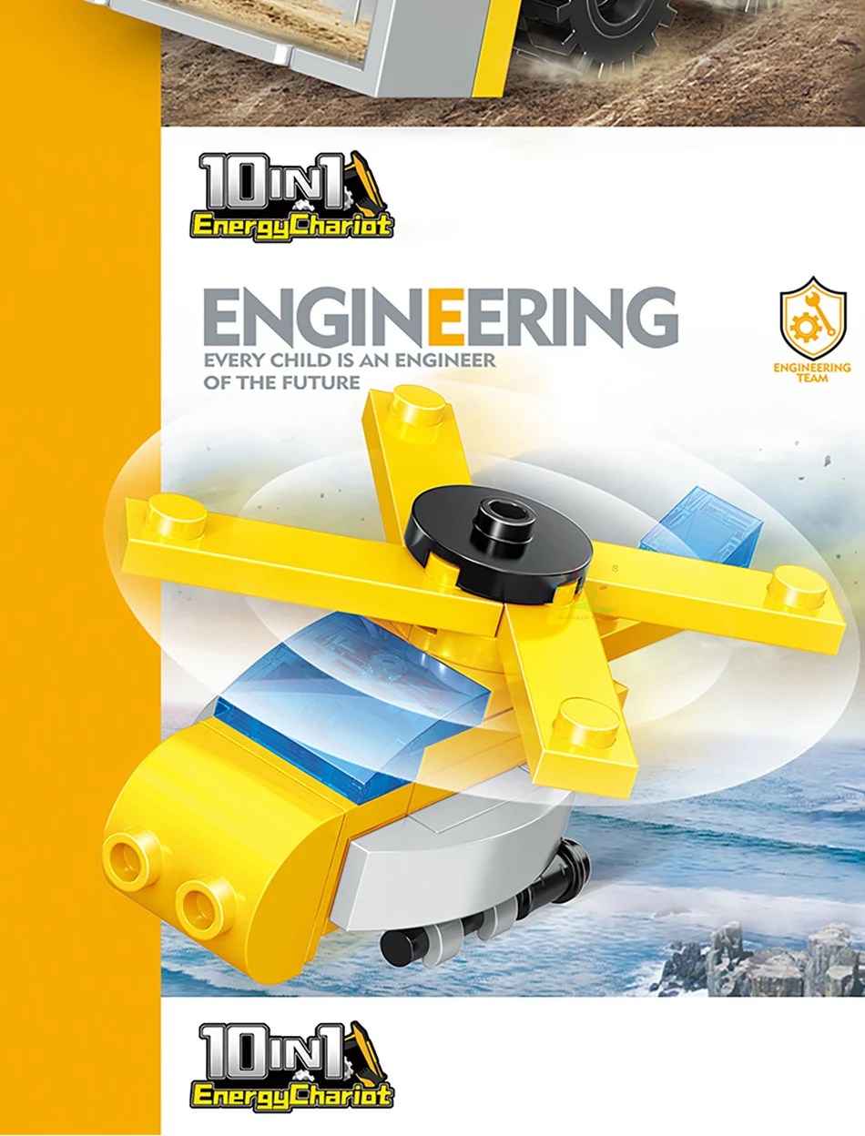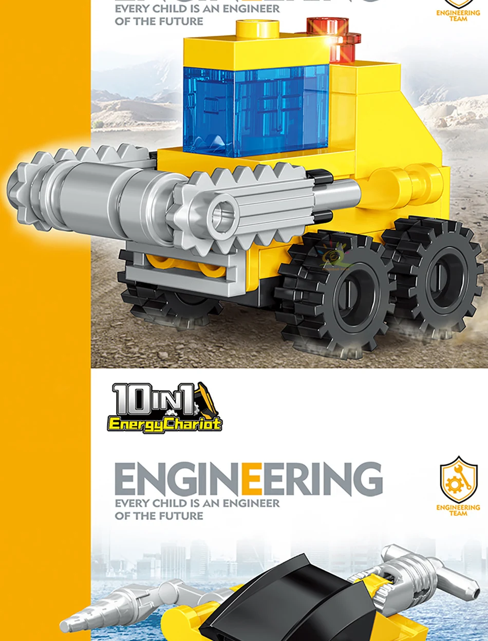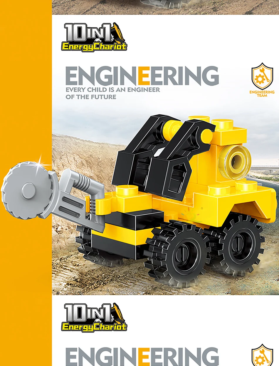 HUIQIBAO Random 1 PC Car City Multifunctional Engineering Vehicle Building Blocks Boys DIY Excavator Bulldozer Construction Toys