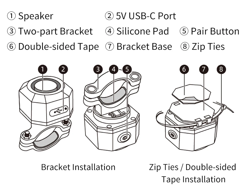 Если вы хотите установить его в подушку сиденья, багажник, под педаль или в переднюю коробку для хранения, вы можете выбрать двустороннюю установку клейкой ленты.