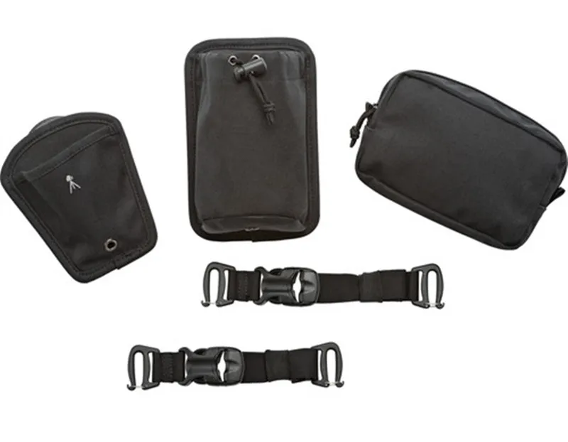 SlipLock-совместимая система ремней и модульные аксессуары, включая сумку для бутылки с водой, чехол для аксессуаров, чашку штатива и две дюймовые ремни.