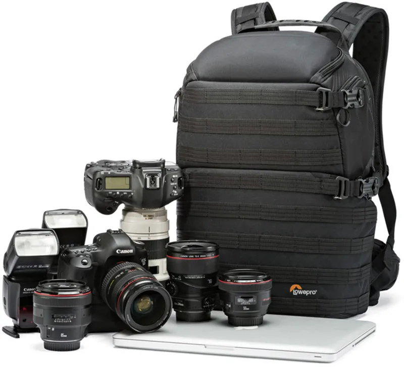 Вмещает 1-2 Pro DSLRs, в том числе 1 с прикрепленным объективом 70-200 мм f/2,8, плюс 8 дополнительных объективов или вспышки, штатив и 15 "ноутбук.