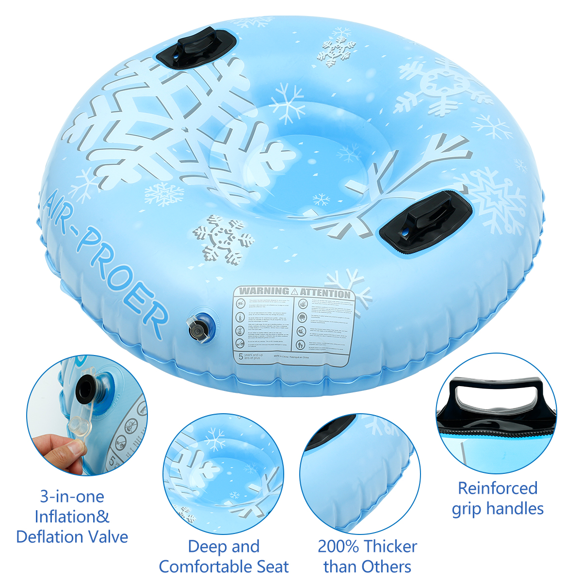 【Быстрая инфляция и вентиляция 】наши надувные сани, благодаря своим большим клапанам, легко надувать и сдувать, двойная крышка, предотвращает утечку