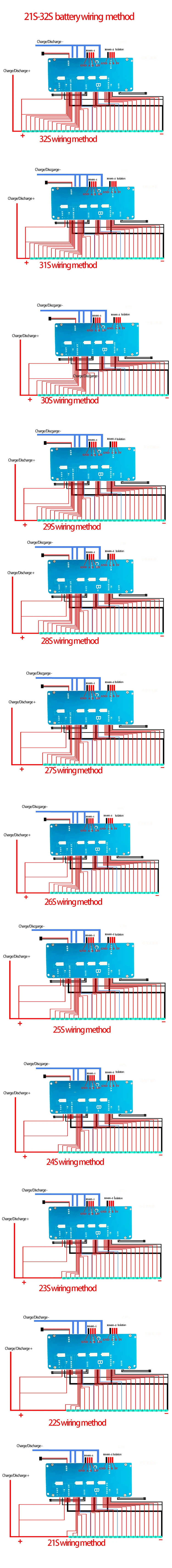 1. Он поддерживает 13S-24S литий-ионных, LifePo4 и Li4Ti5O12 батарей, он не подходит для 3S-12S BMS