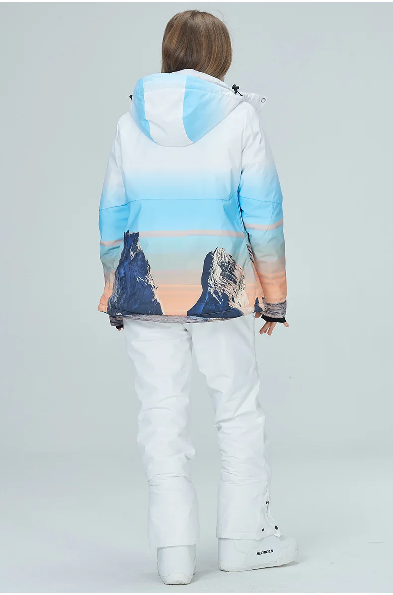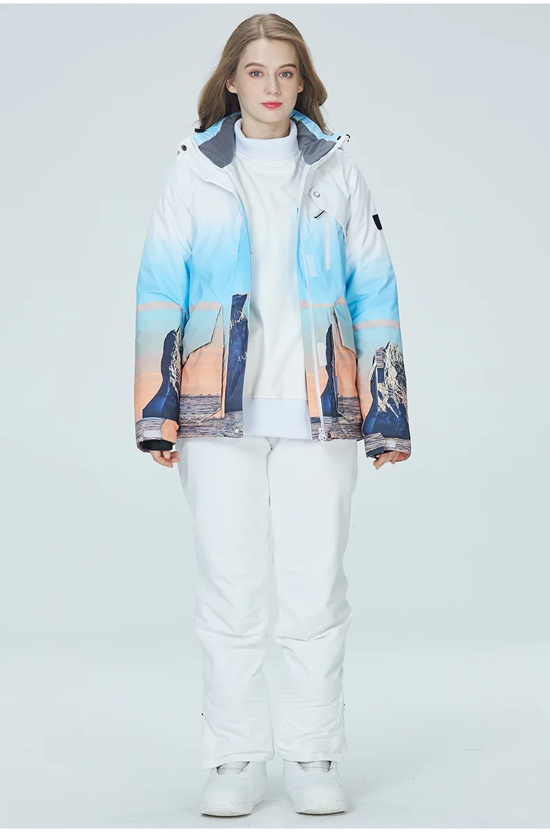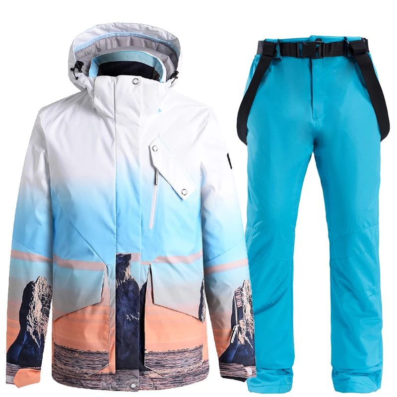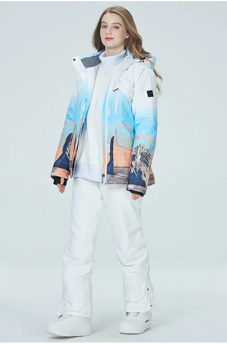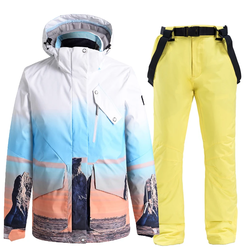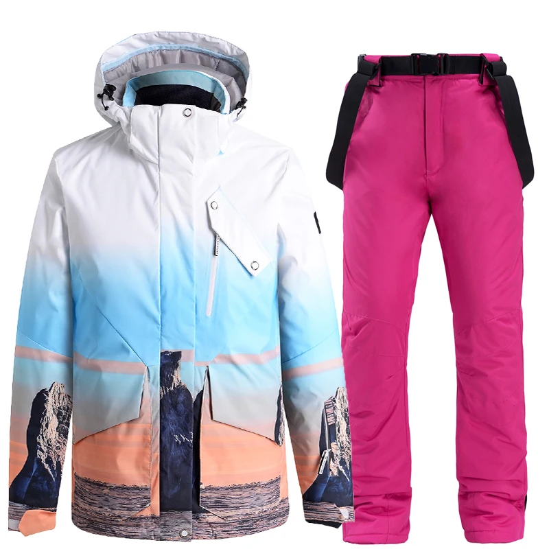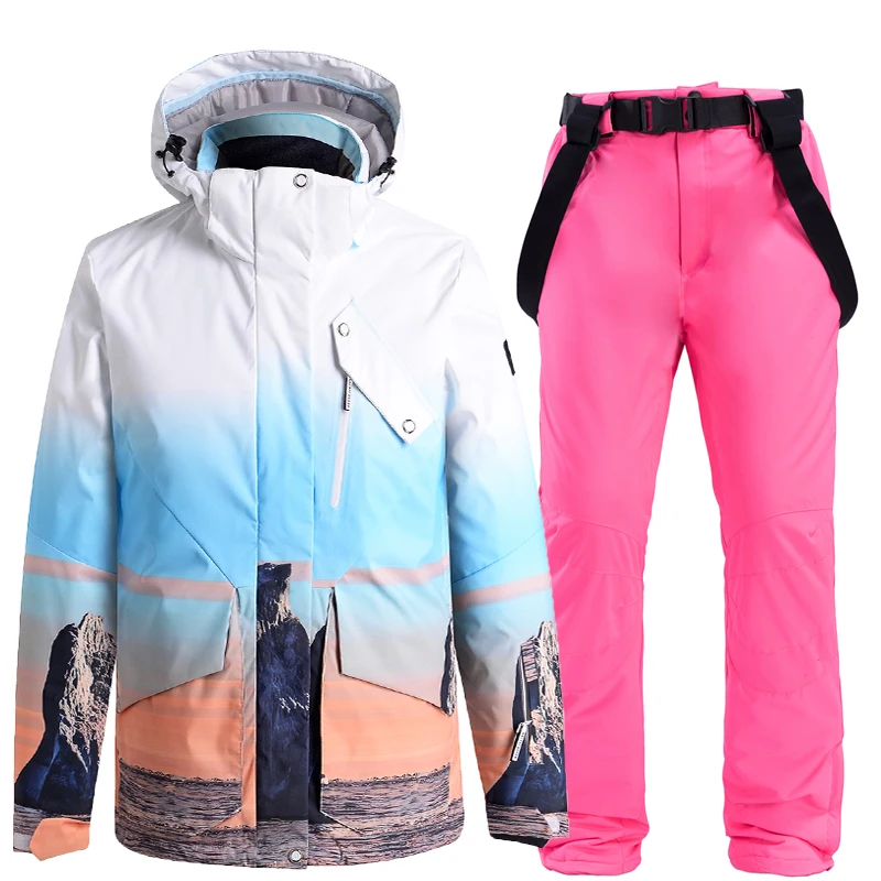 Женская лыжная куртка, штаны, утолщенная зимняя одежда, брюки, водонепроницаемые, ветрозащитные, супер теплые, унисекс, для сноуборда, верховой езды, горный костюм