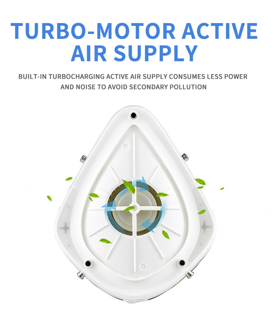 Устройство вентилятора управляется литиевой батареей, чтобы отправить внешний воздух внутрь капюшона, уменьшить удушье маски и улучшить комфорт.