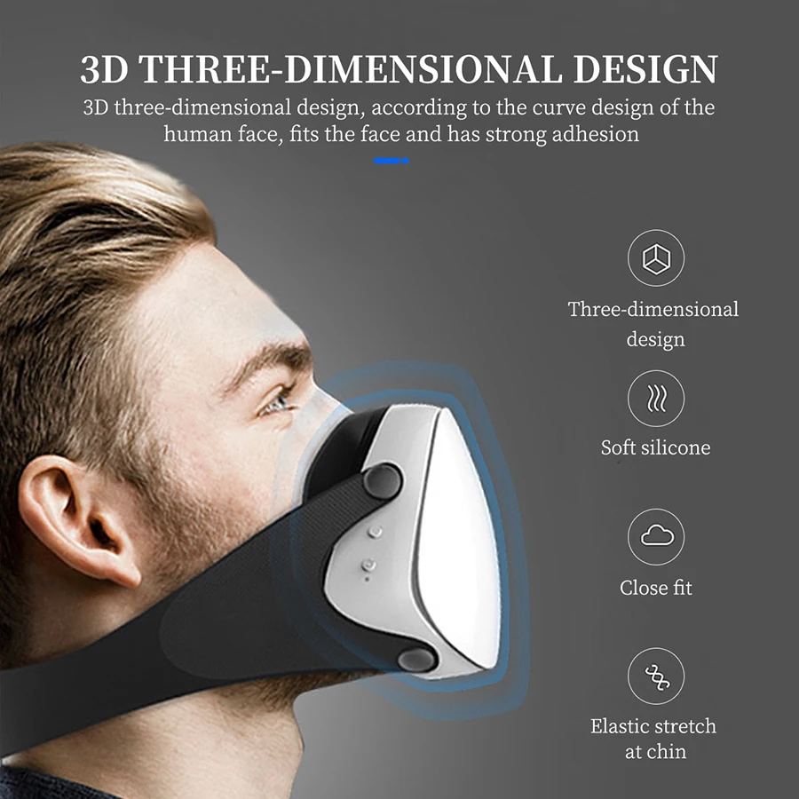 4. Эргономичный дизайн изгиба, эластичность подходит для лица, чтобы уменьшить утечку воздуха, пыль не легко просачивается в защитный слой, образованный силикагелем, и эффективно улучшает герметичность маски во время лицевых мышечных упражнений.