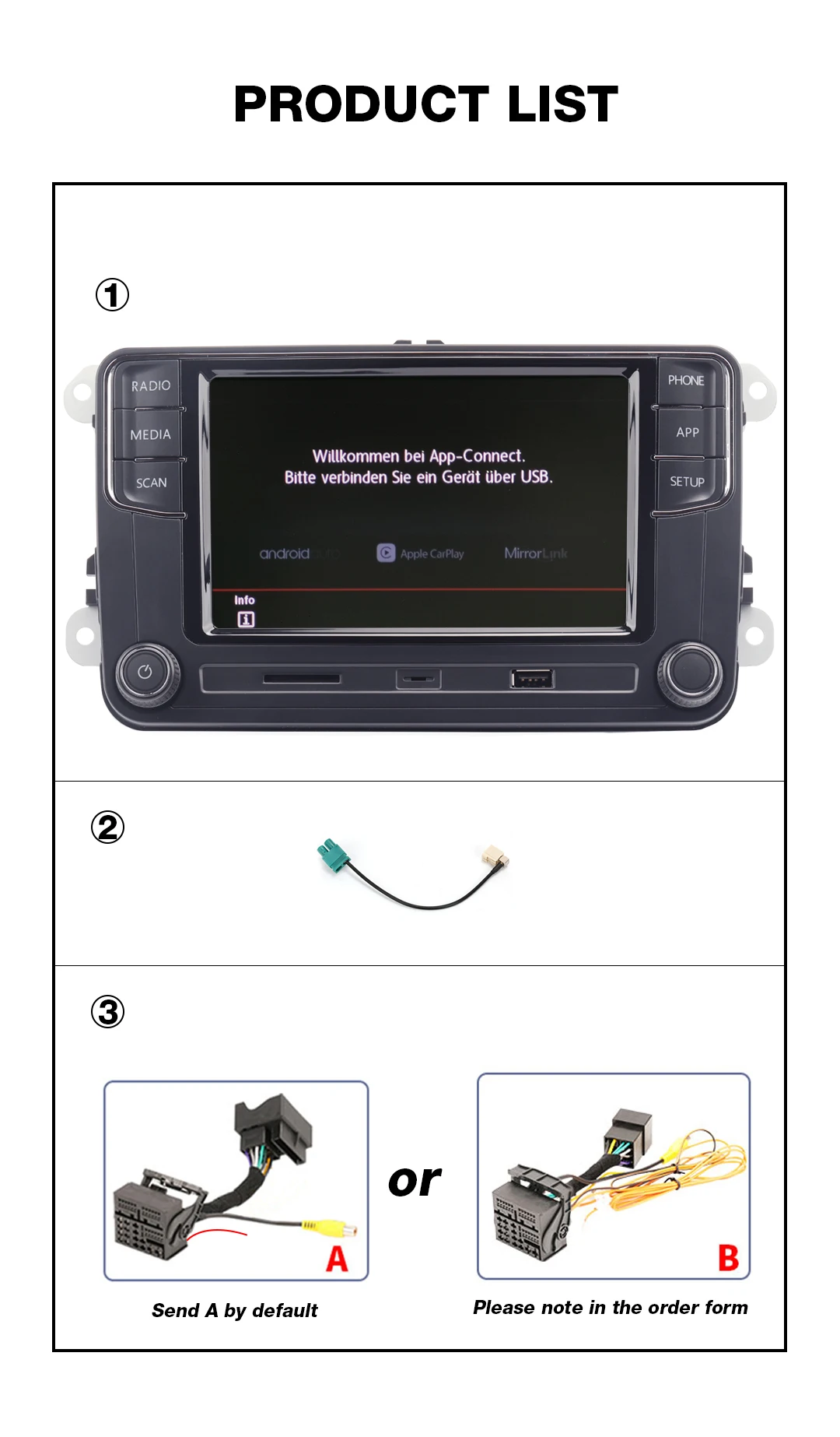 Такой же размер, как вилки Rcd510 / RCD310 / RNS510 (plug and play).