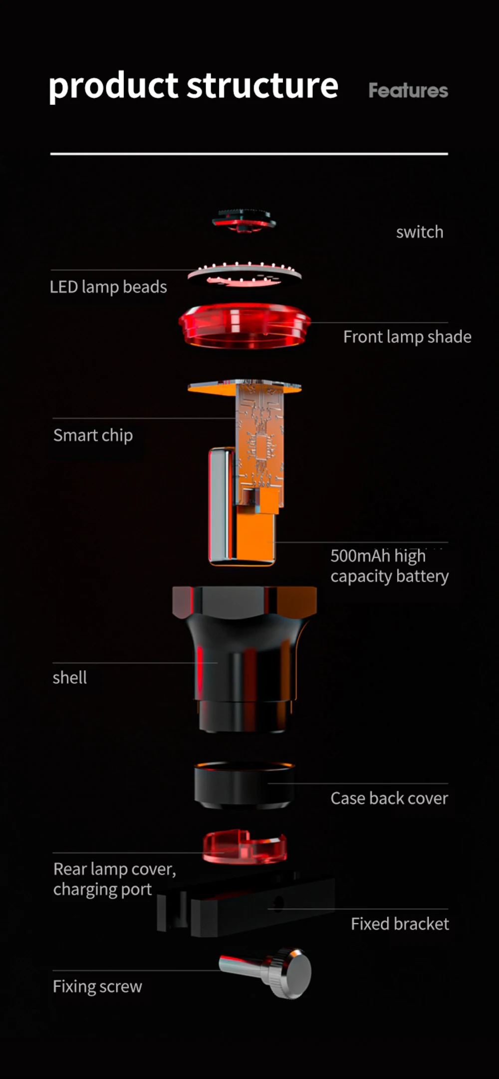 1. Автоматический индукционный датчик торможения заднего фонаря велосипеда.