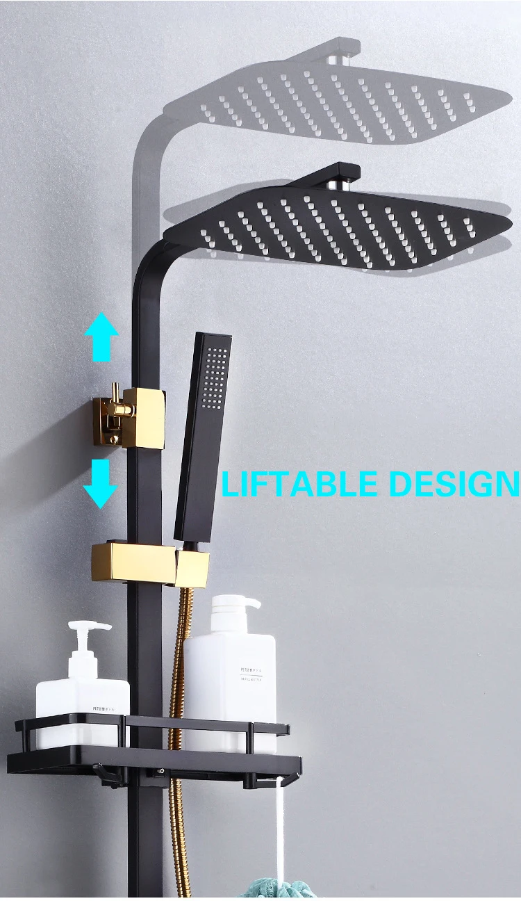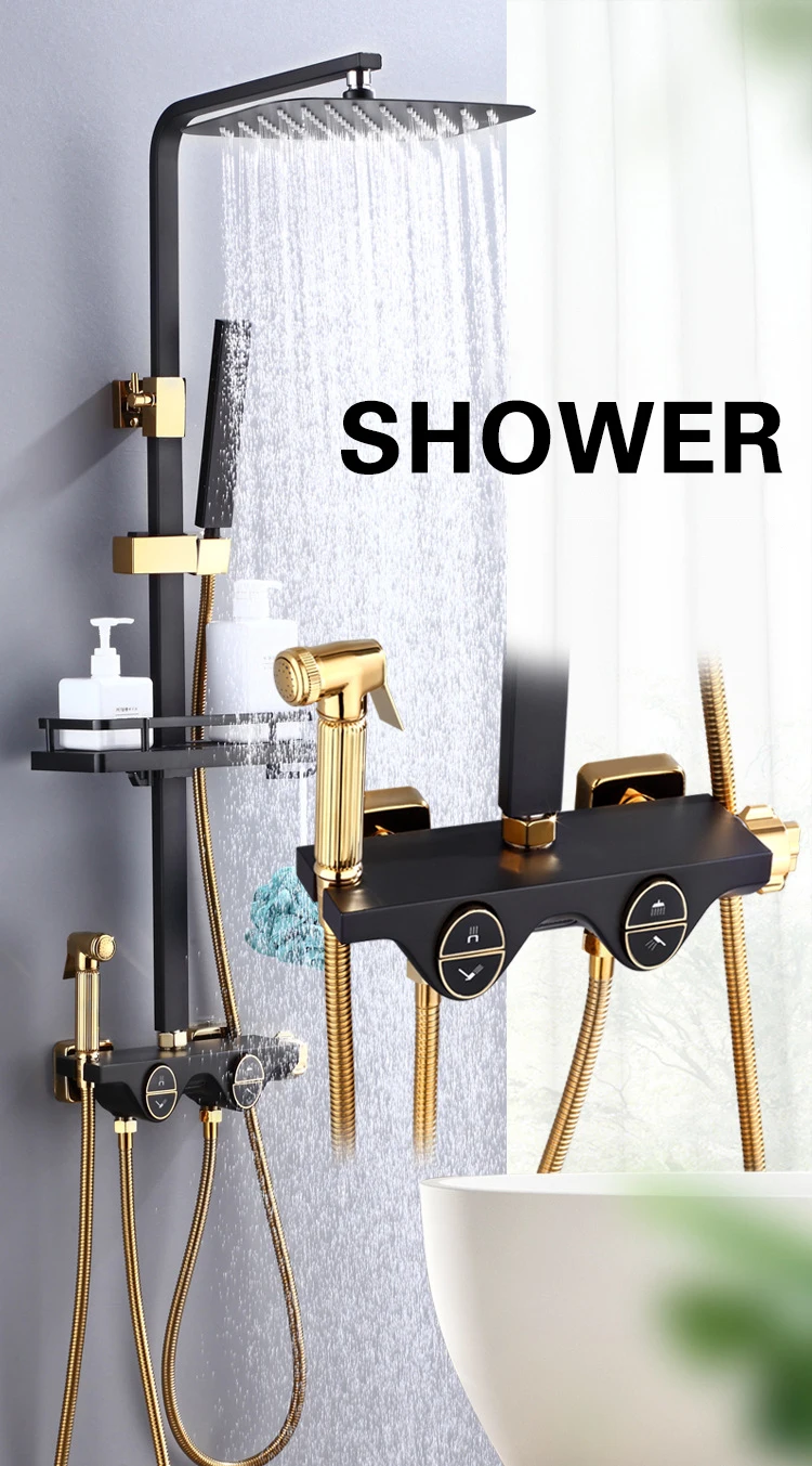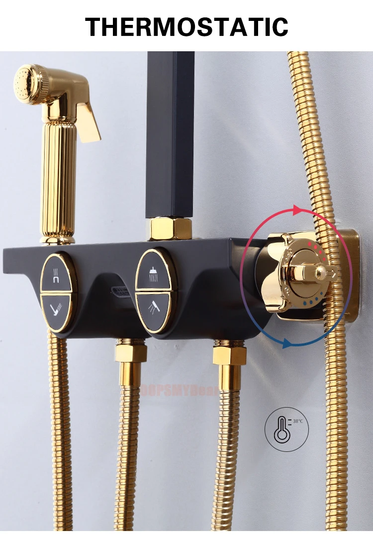 Набор для душа черного и золотого цвета, термостатический смеситель, Цифровой Смеситель для ванной комнаты, настенный ванный кран, роскошная система для душа, набор для ванны с осадками