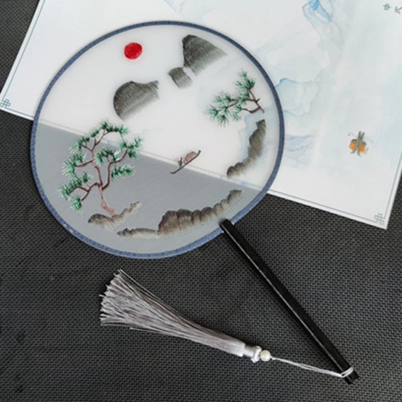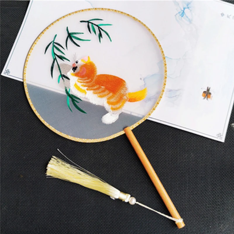 Chinese Style Round Embroidered Silk Fan Craft Gift Home Decoration Hanfu Animation Accessories Chinese Style Hand-held Fan