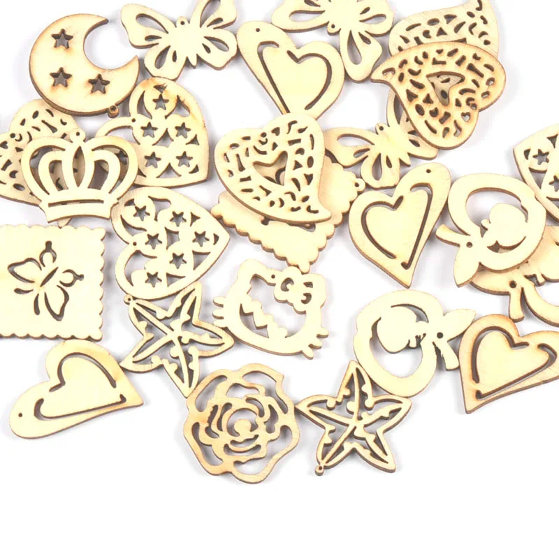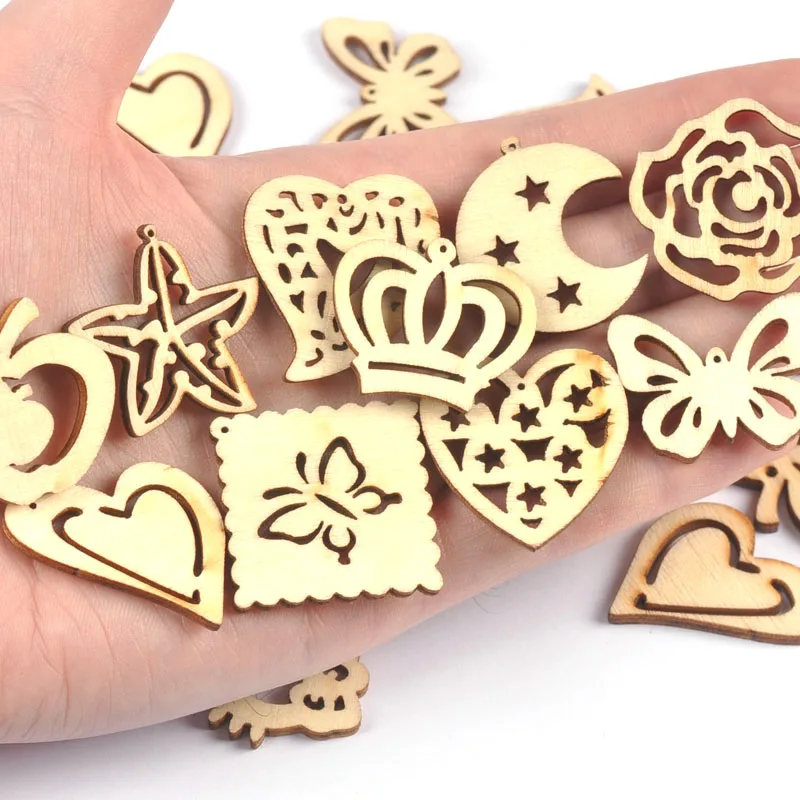 25 шт. натуральное дерево кристаллы Корона сердце звезды необработанные деревянные поделки своими руками и Скрапбукинг украшение для дома M0691