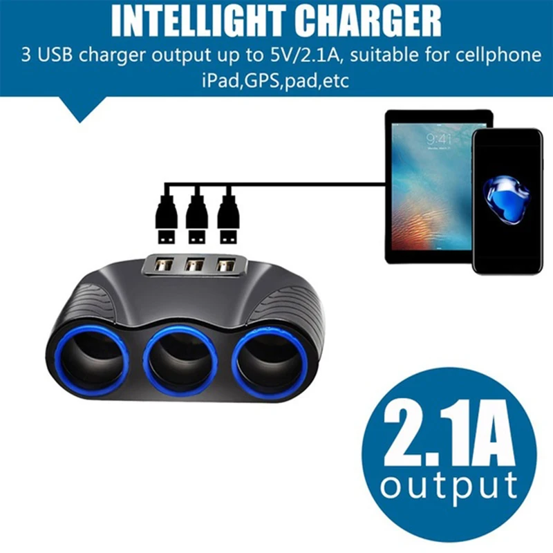 Просто вставьте в гнездо автомобильного прикуривателя 3 гнезда прикуривателя s.