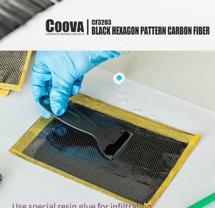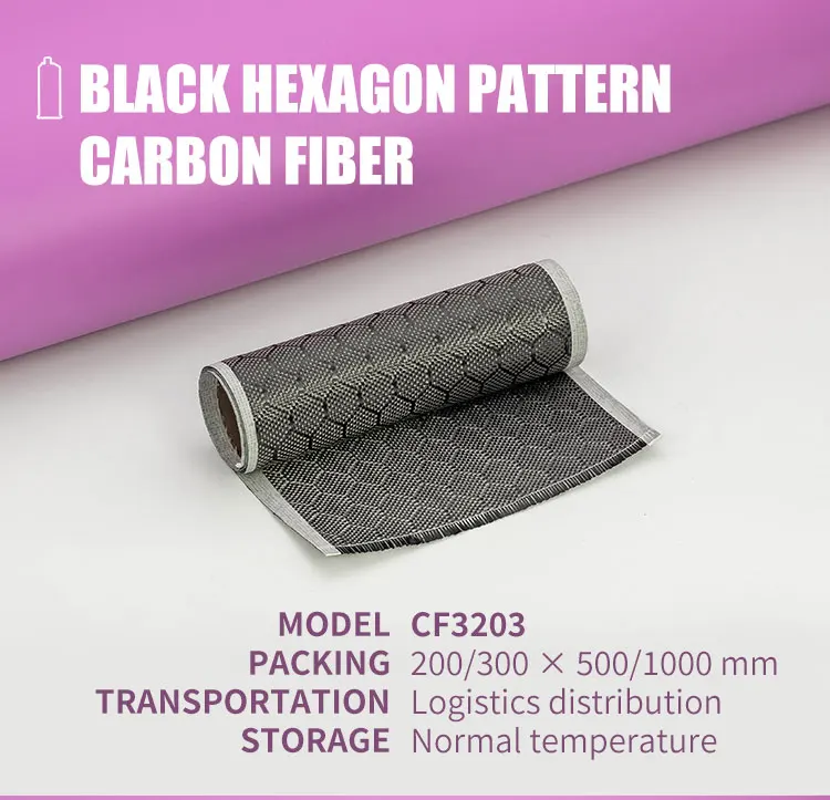 Это композитный материал из углеродного волокна с 3K буксировкой 240g/m2.двухсторонним шестигранным переплетением, высокой прочностью и малым весом, обладает отличной ударопрочностью и устойчивостью к истиранию. Нетоксичный и стабильный, очень подходит для отделочных материалов, включая автозапчасти, спортивное оборудование и т. д.