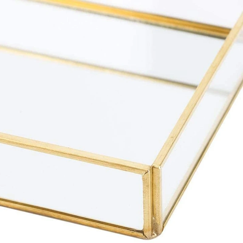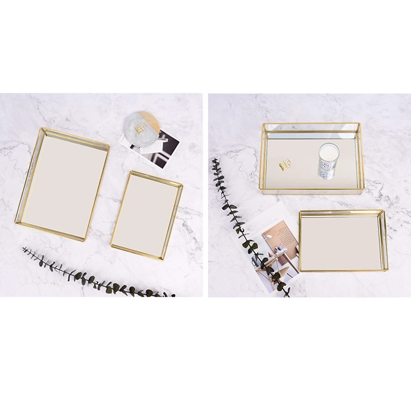2 шт., скандинавский Ретро лоток для хранения, золотой прямоугольник, стекло, органайзер для макияжа, лоток для десерта, ювелирный дисплей, Кухонное украшение для дома S & M