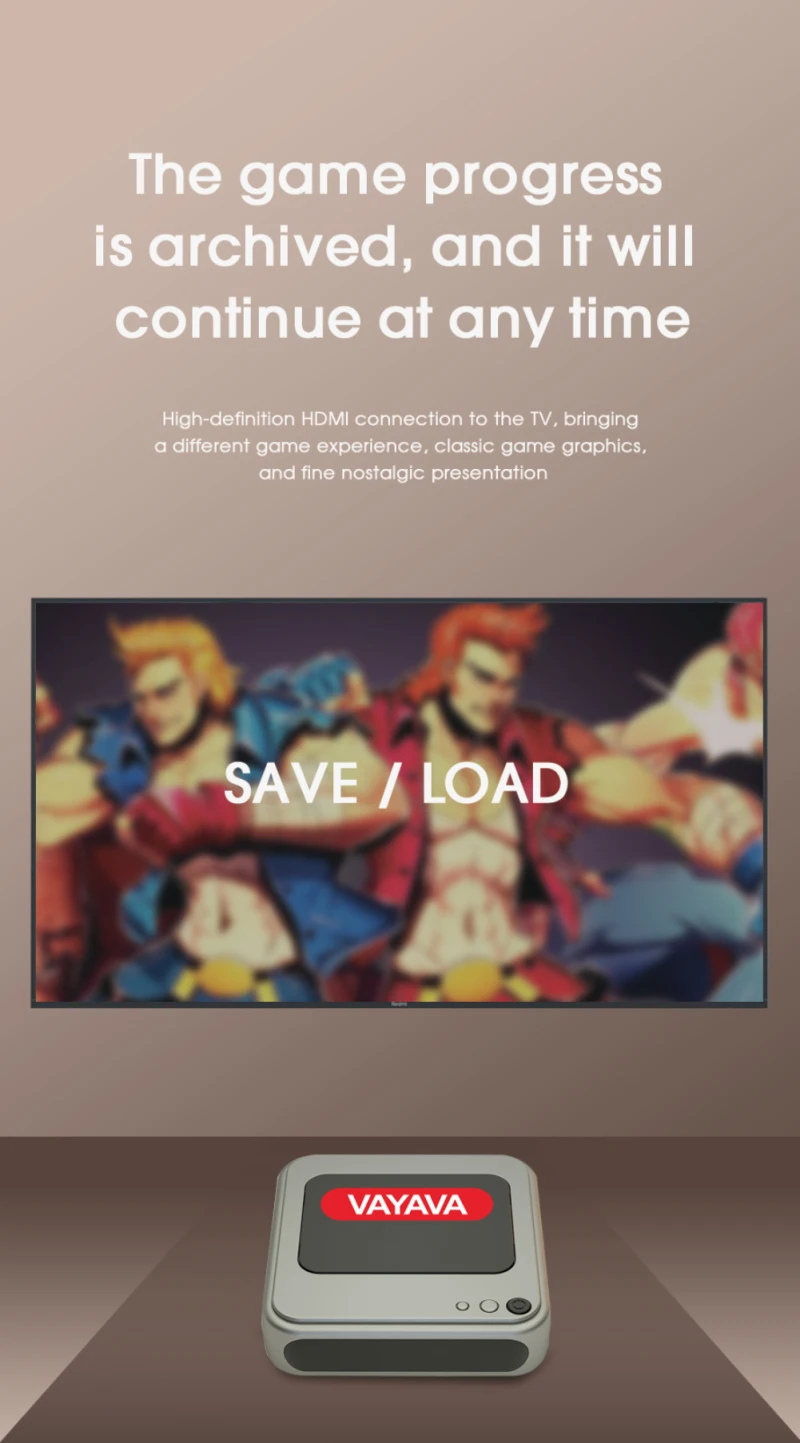 • Hdmi-совместимое соединение высокой четкости с телевизором, привнося разный игровой опыт, классическую игровую графику и прекрасную ностальгическую презентацию.