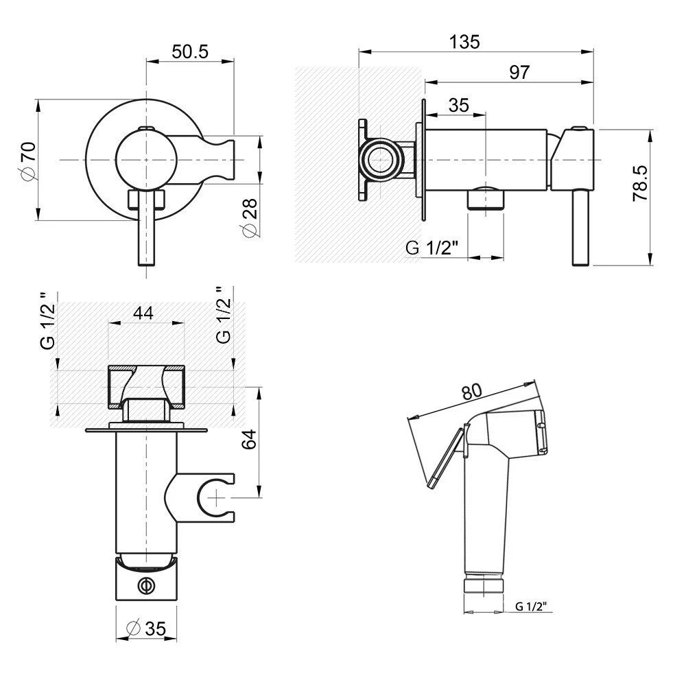 Гигиенический душ итальянской фабрики PAINI - современное техническое решение для организации санузла. Его конструкция включает душевой шланг и лейку, которые крепятся и подключаются рядом с унитазом.