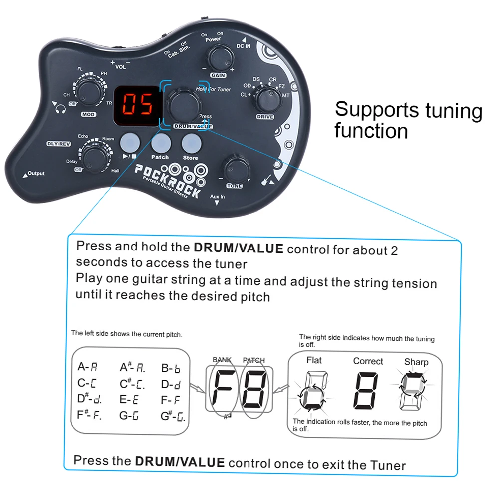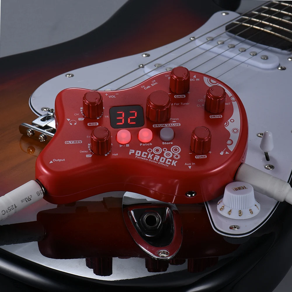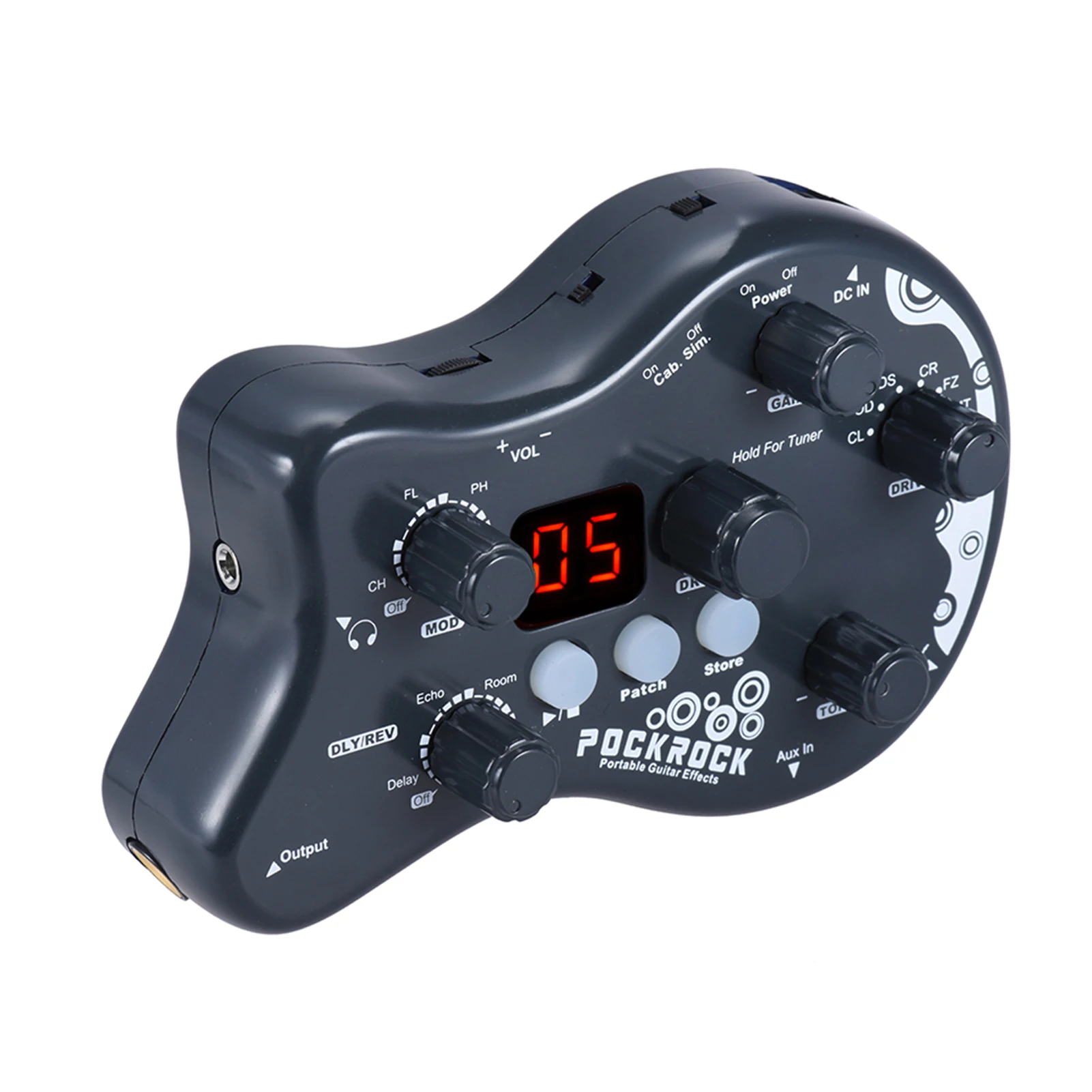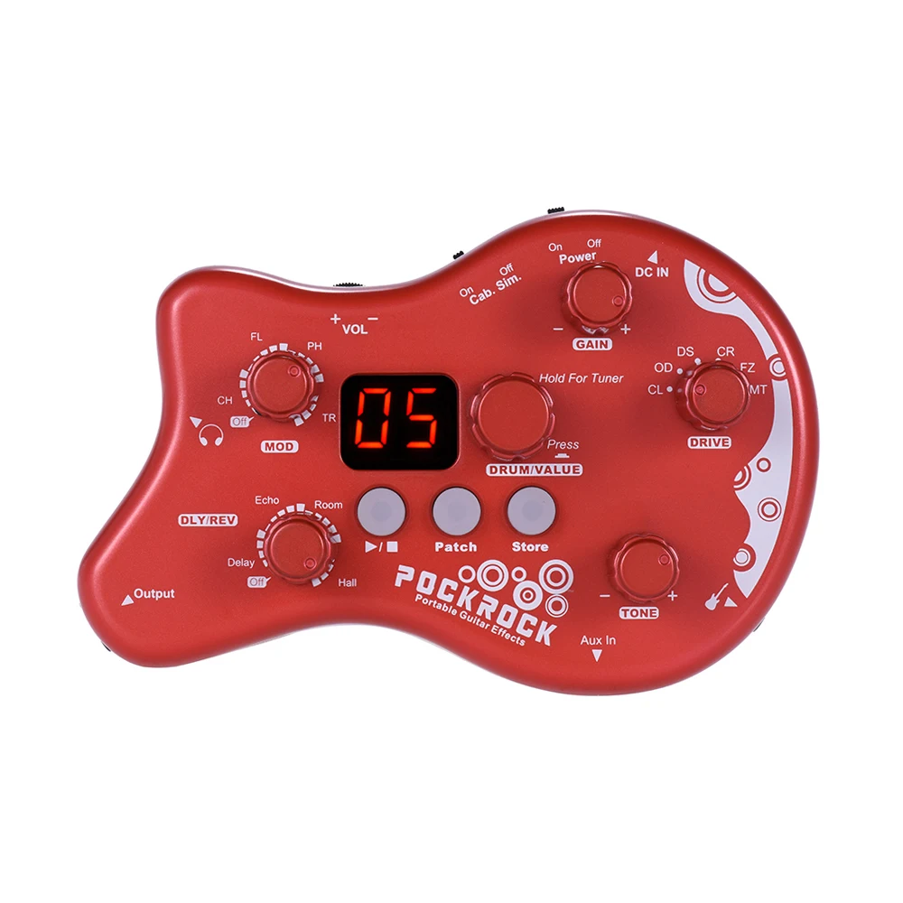 PockRock-это портативная гитарная педаль с несколькими эффектами. 5 модулей эффектов с 15 типами эффектов, 40 барабанных ритмов, 16 заданных патчей и 16 пользовательских патчей. Это не только звуковая библиотека, но и позволяет создавать собственную звуковую библиотека. С наушниками и AUX in вы можете наслаждаться игрой ночью и не беспокоиться о беспокойстве других. Режим работы от аккумулятора позволяет брать его везде. Все, что вам нужно, находится в PockRock!