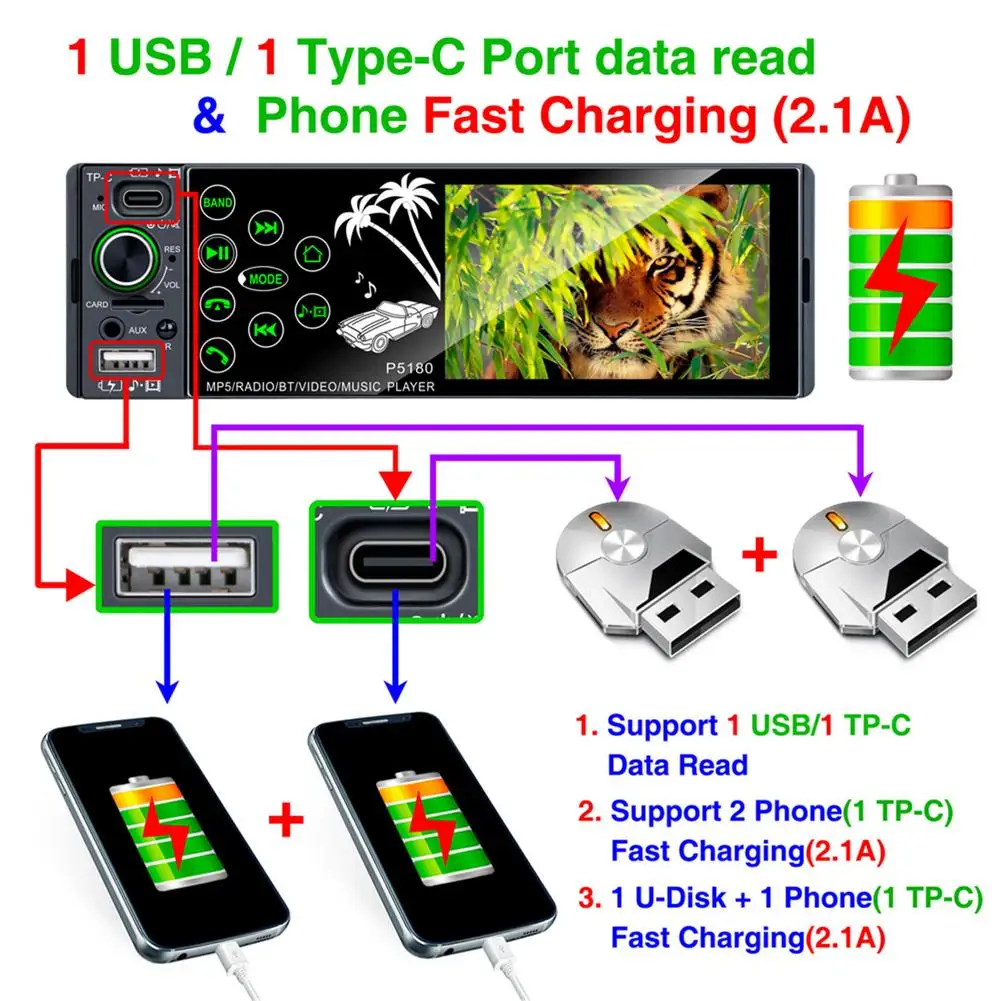1 Din автомобильное радио Стерео FM радио автомобиль MP5 плеер 3,8 дюймов IPS емкостный сенсорный экран прочный функциональный для вождения автомобиля