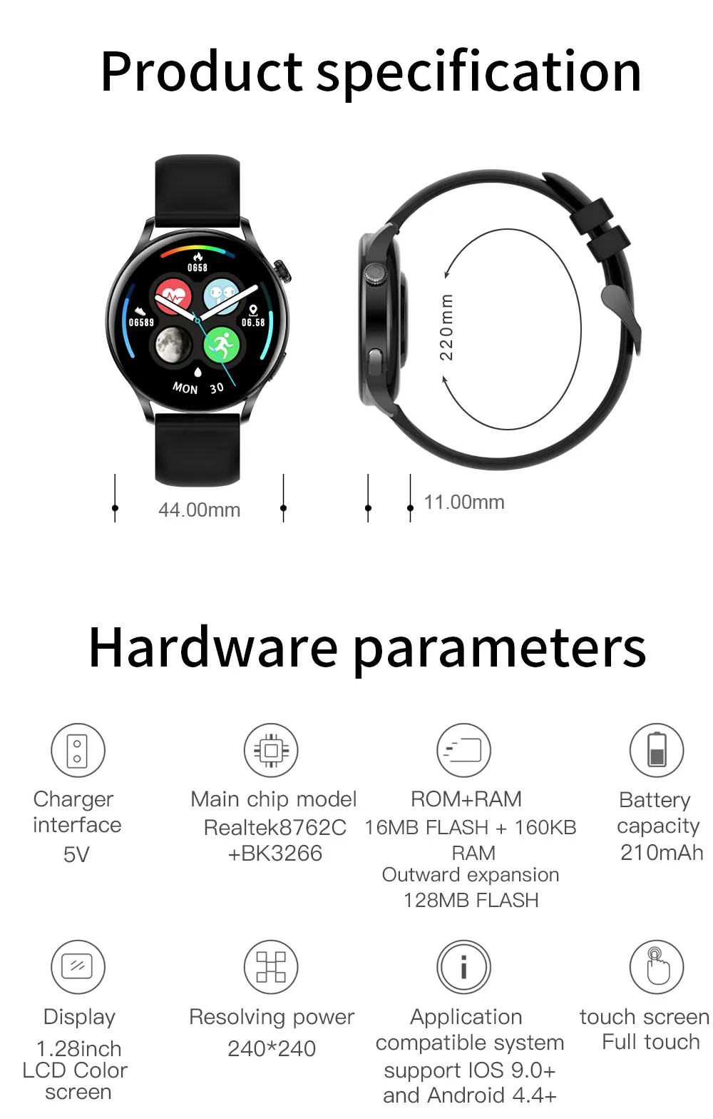 > Экран: 1,28 дюйма 240*240full touch