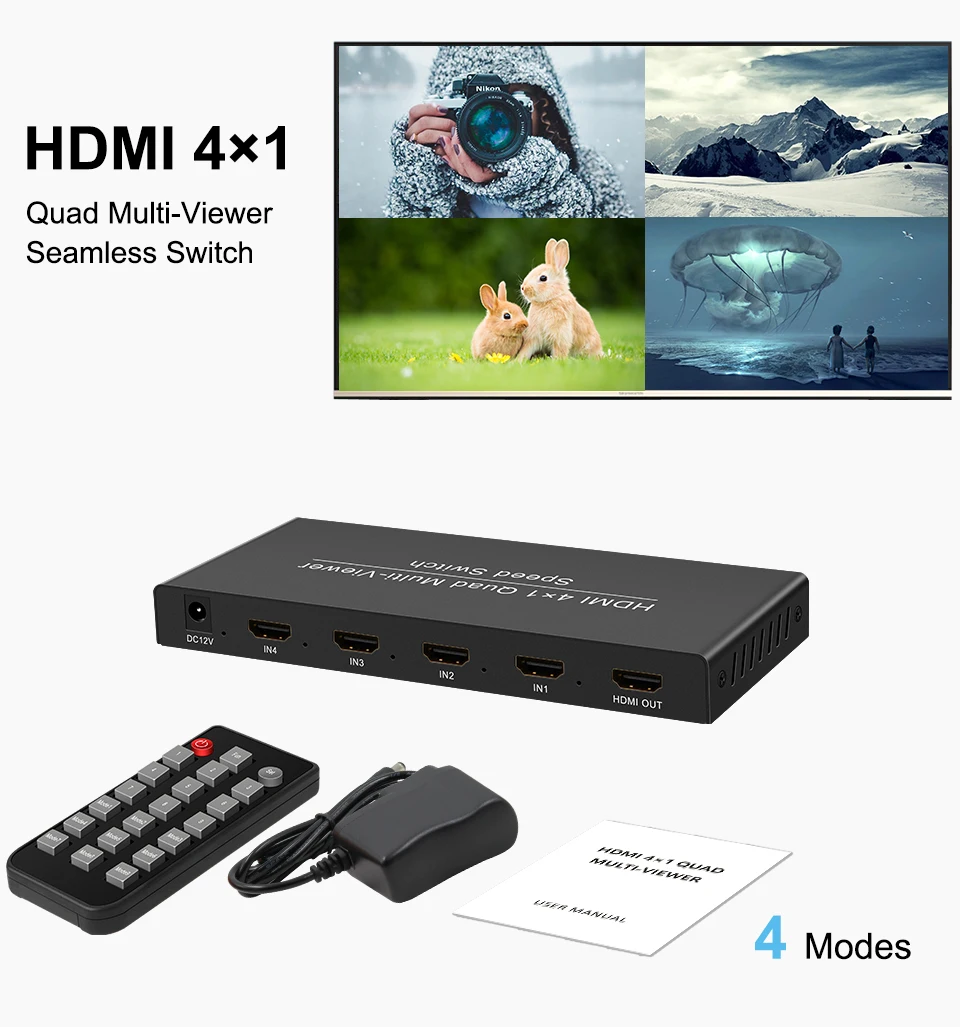 Этот мульти-просмотра 4x1 HDMI является высокой производительностью с четырьмя сегментами экрана HDMI и бесшовным переключением выходного переключателя.