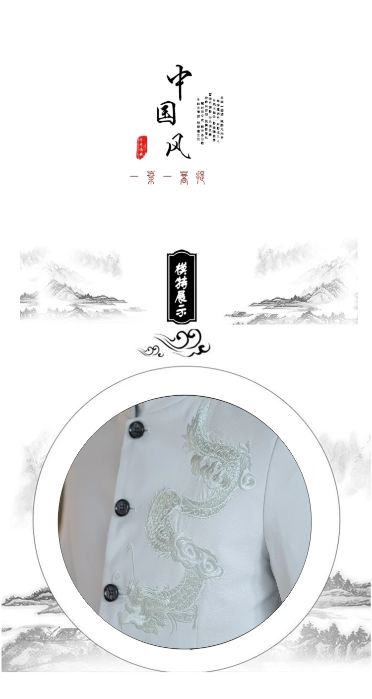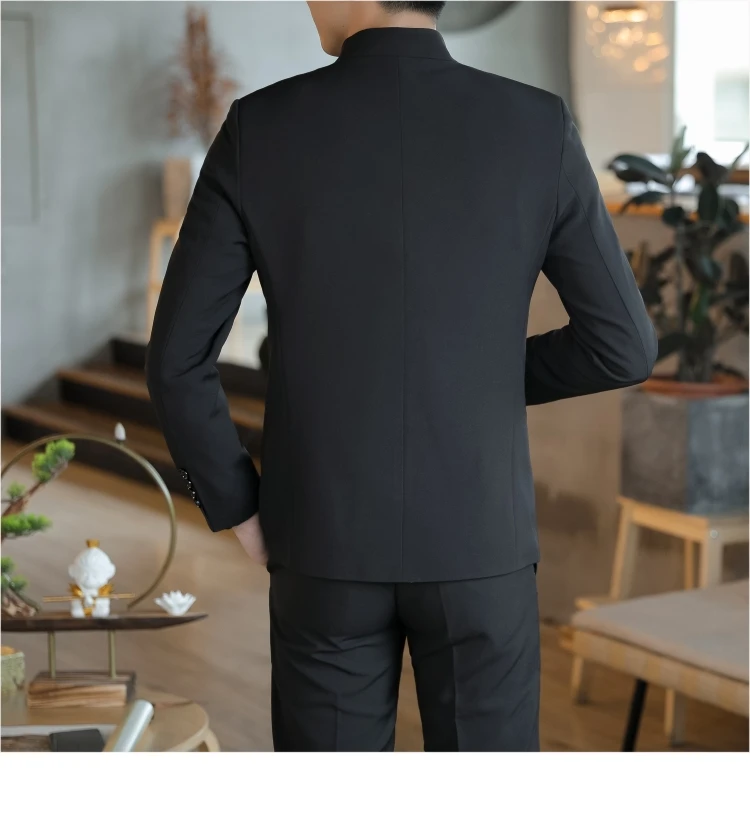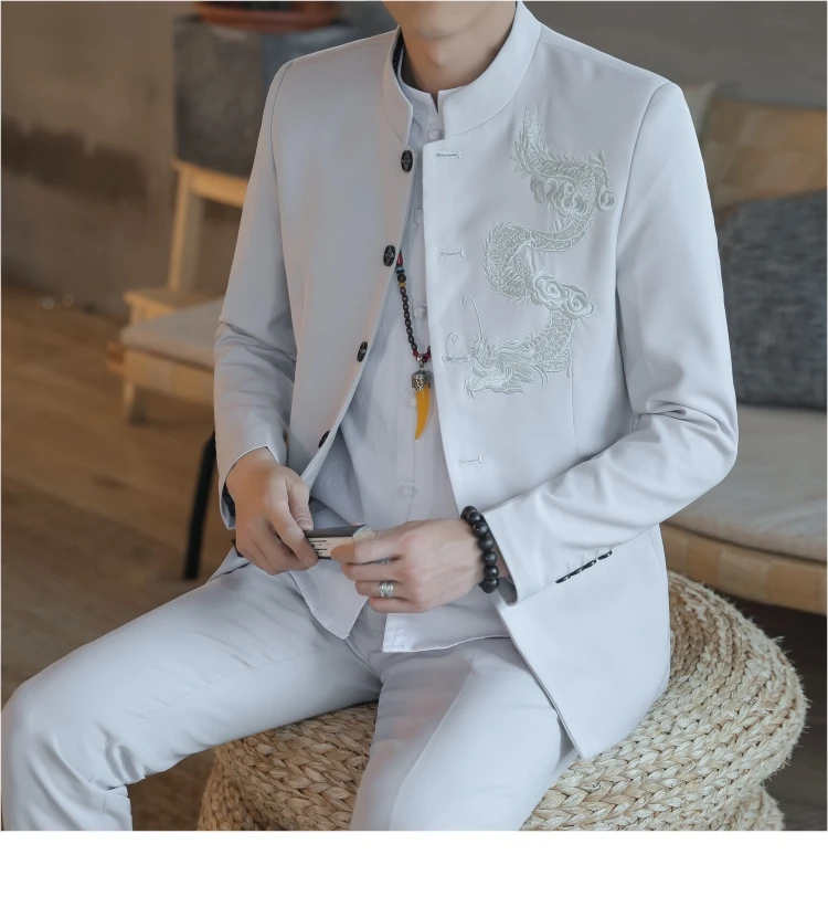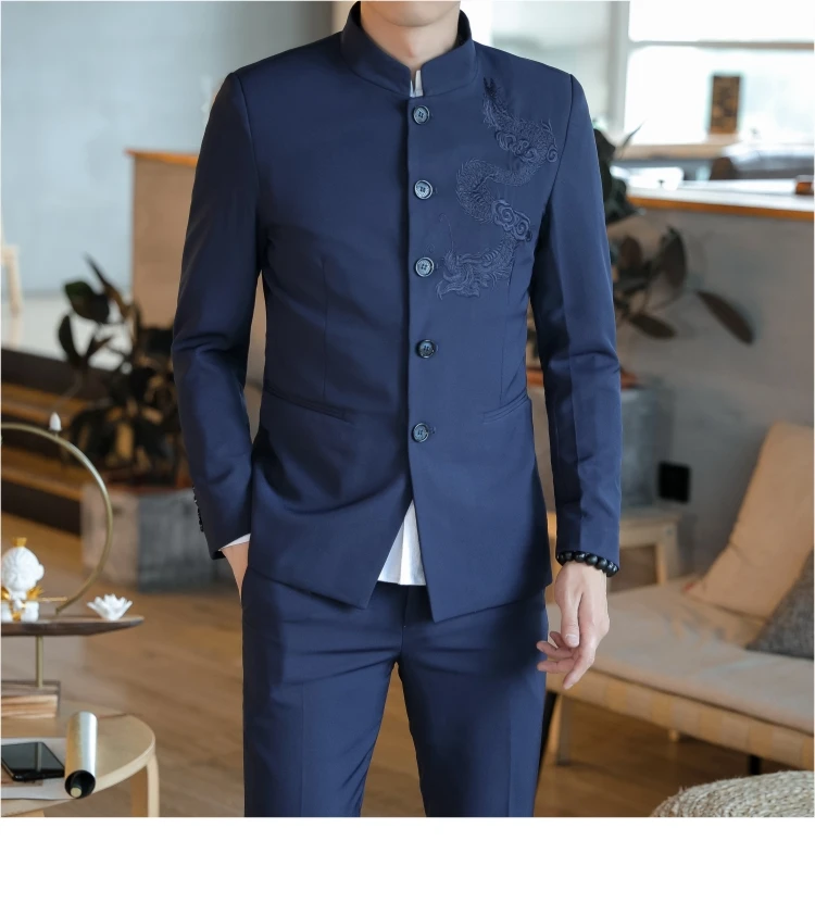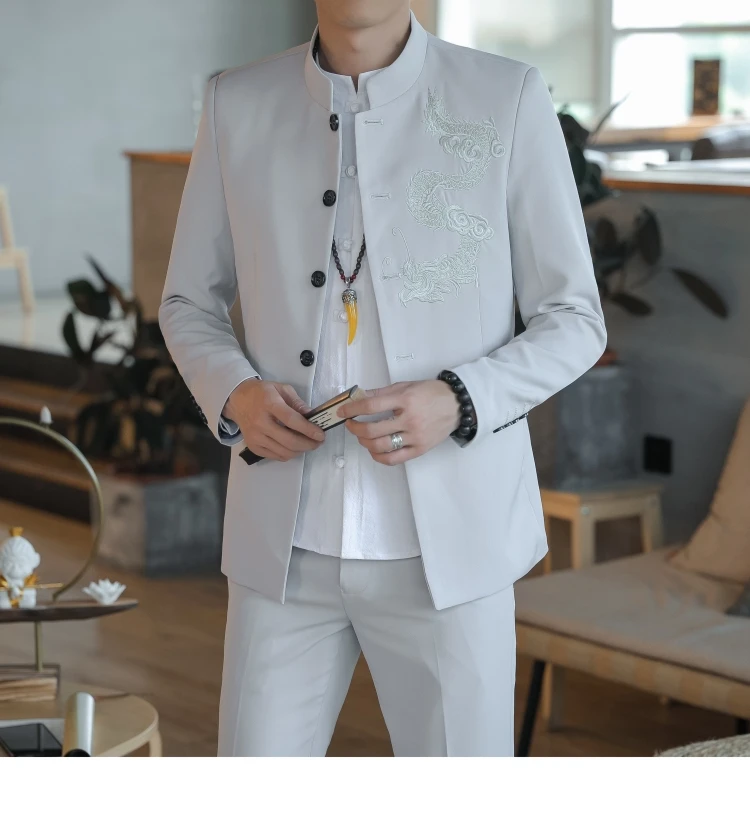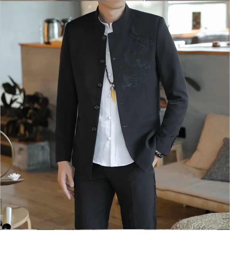 Большой размер, китайский стиль, дракон, костюм Чжуншань, мужской костюм Тан, элегантный, приталенный, Tangzhuang, воротник-стойка, бордовый, комплект из 2 предметов