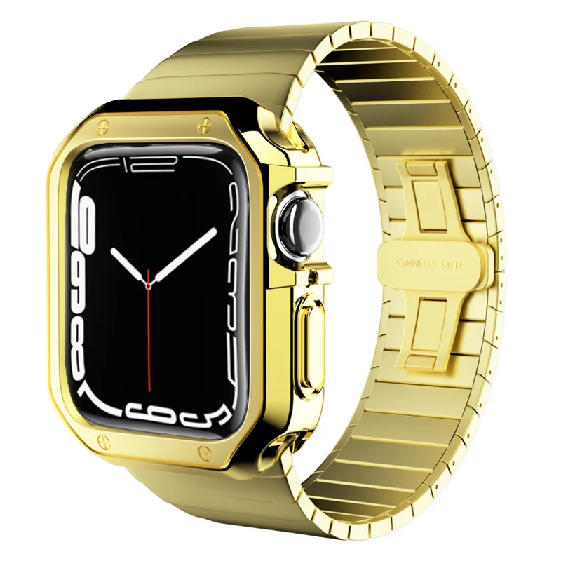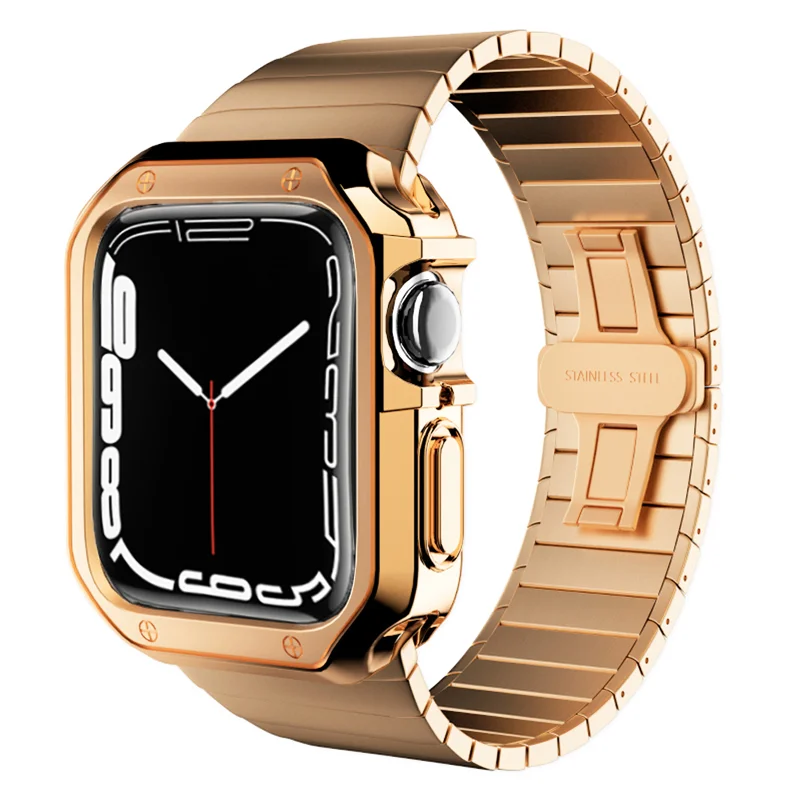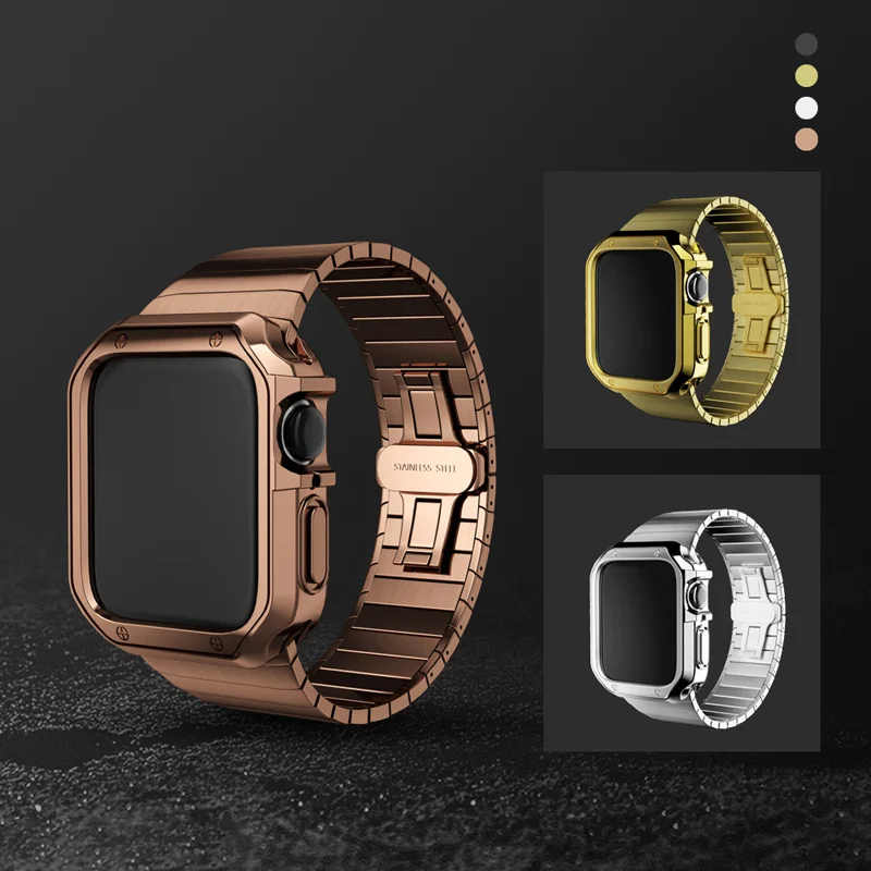 Ремешок + силиконовый чехол из нержавеющей стали для Apple Watch Band 45 мм 44 мм 40 мм 38 мм 42 мм бампер рамка Крышка для iwatch series 7 6 5 4 3 2 1 SE
