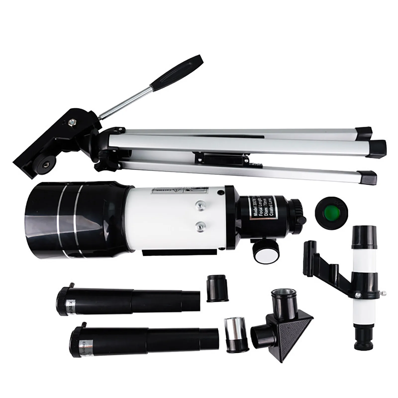 Это Небольшая преломления астрономический телескоп с преимуществами Больший диаметр (70 мм) и низкая цена. Он не занимает место и Подходит для начинающих астрономов. Он оснащен 2 окулярами с Различные увеличения и увеличение 1,5x. Зеркало. Это позволяет вам Чтобы свободно сочетать и наблюдать предметы разных расстояний и размеров.
