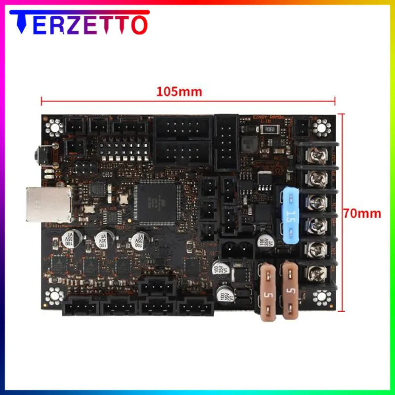 Основная мощность 10A 12-24 В: двигатели, логика и вентиляторы (5А выделенный предохранитель) + Экструдер (5А выделенный предохранитель)