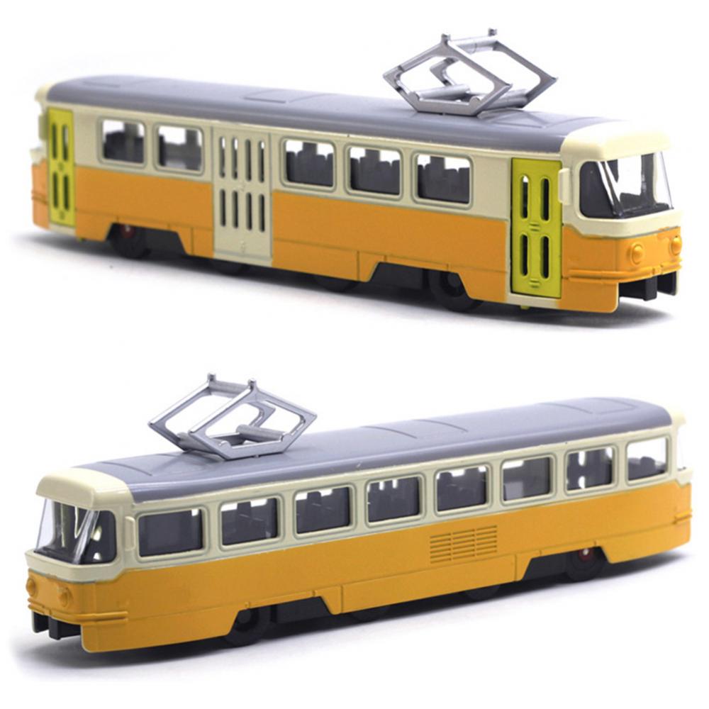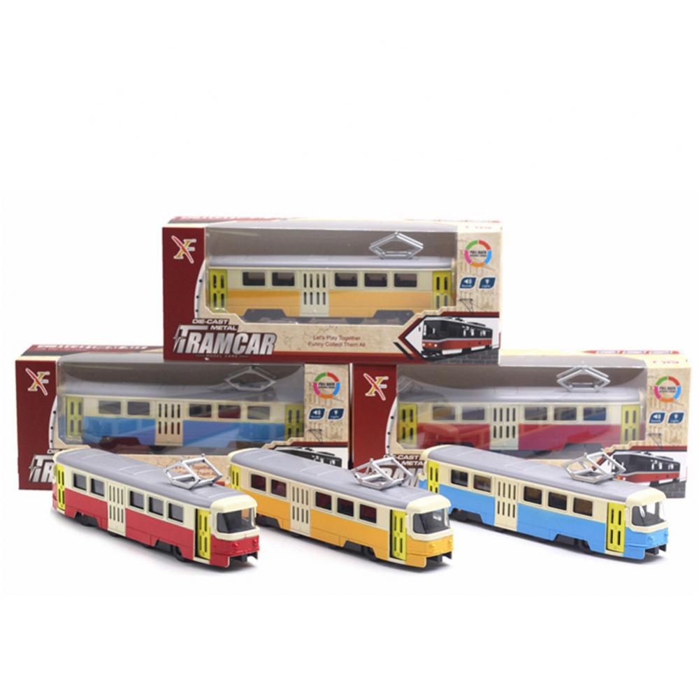Классический поезд, трамвай, литье под давлением, оттягивает назад модель с светодиодный музыкальной развивающей игрушкой для детей