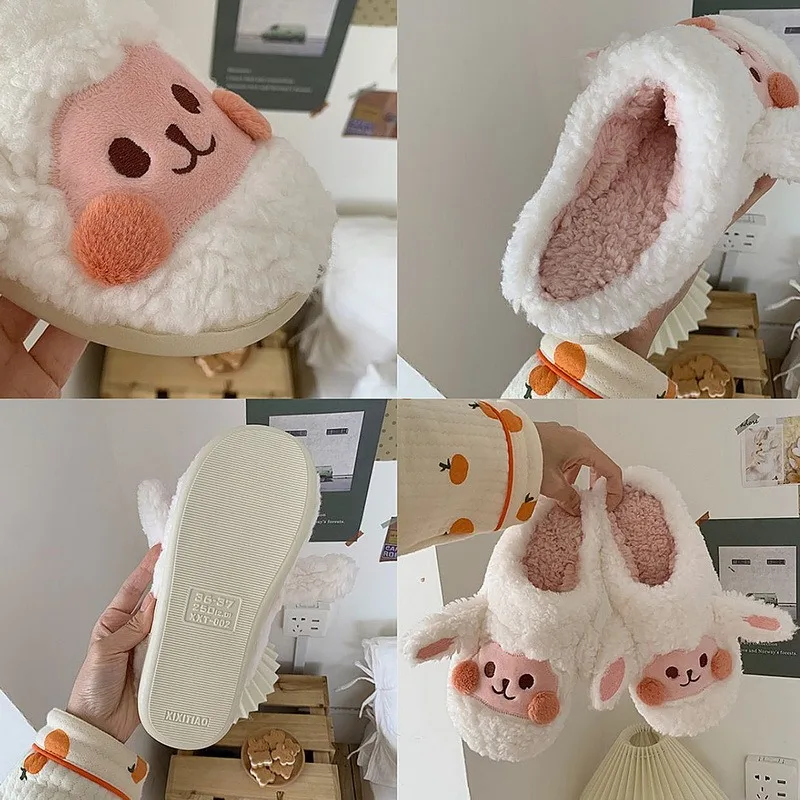 Милые тапочки с животными; Модные женские пушистые зимние теплые тапочки; kawaii