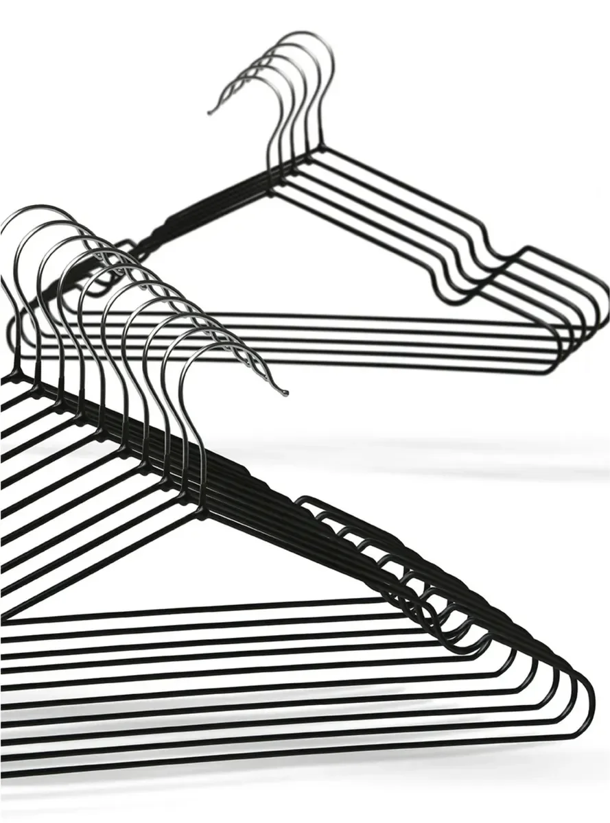 Такое покрытие не дает одежде скользить по вешалке. Классическая форма тремпеля с перекладиной для брюк и выемкой для одежды с бретельками позволяет использовать их практически для любой одежды. Благодаря плоской форме вешалки не занимают много места в гардеробе.