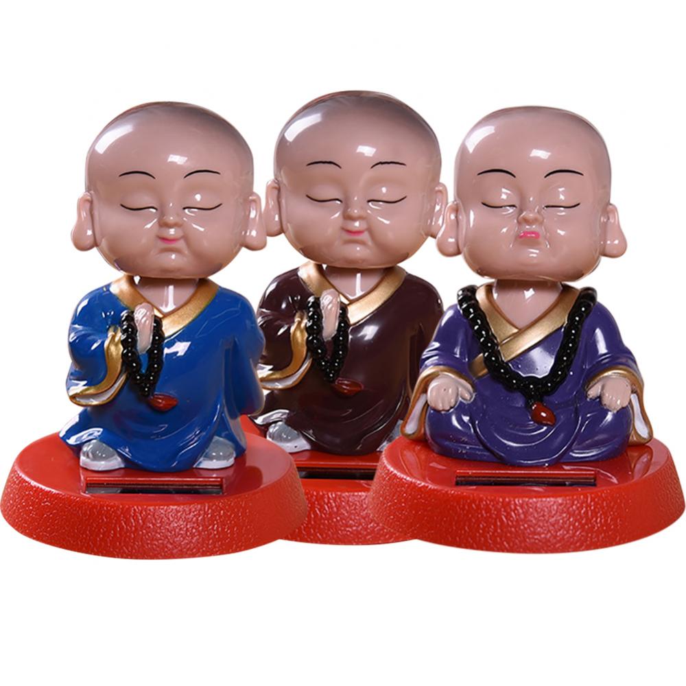 Solar Power Lovely Cartoon Monk Swing Head Car Interior Dashboard Ornament Gift