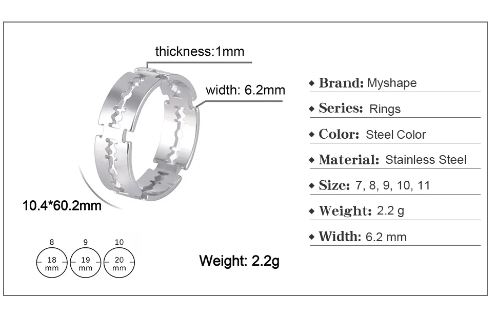 Наименование товара: кольцо с лезвием в стиле панк для мужчин и женщин, серебряное кольцо из нержавеющей стали, модные вечерние кольца с бегемотом, мужское кольцо Материал: нержавеющая стальЦвет: стальной цвет, золотой цветРазмер: 7, 8, 9, 10, 11Вес: 2,2 гШирина: 6,2 мм Шикарное платье, давно искала именно такое. Выполнено в винтажном стиле, и от него прямо веет духом тех лет. В нем... Читать отзыв полностью...