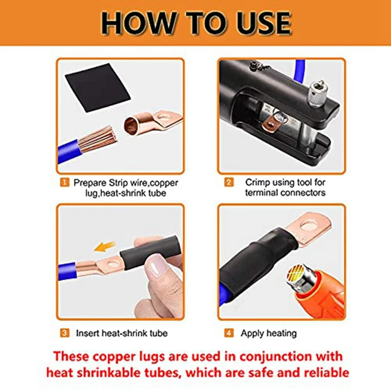 Уникальные высококачественные Медные наконечники: голые медные наконечники для проводов изготовлены из меди, которая обладает хорошей электропроводностью, термостойкостью и коррозионной стойкостью. 2:1 термоусадочная трубка изготовлена из высококачественных материалов, толстых и долговечных. Выдерживает до 600 вольт, 290 градусов