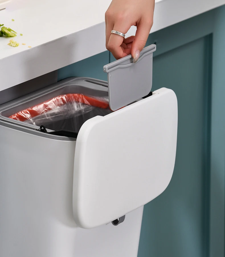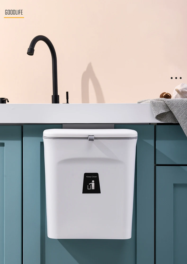 Это мусорное ведро в шкафу Aubid висит на вашей двери кухонного шкафа для быстрого и легкого доступа, пока вы заняты на кухонной стойке.