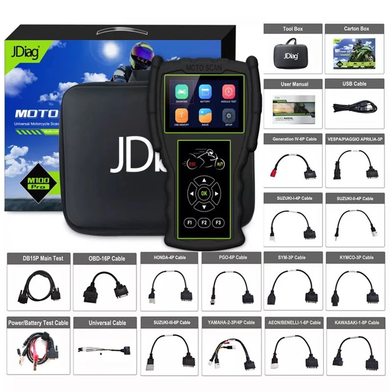 Многоязычный оригинальный JDiag M100 диагностический сканер для мотоцикла общий считыватель кодов мотоцикла тестер батареи для скутера 2 в 1