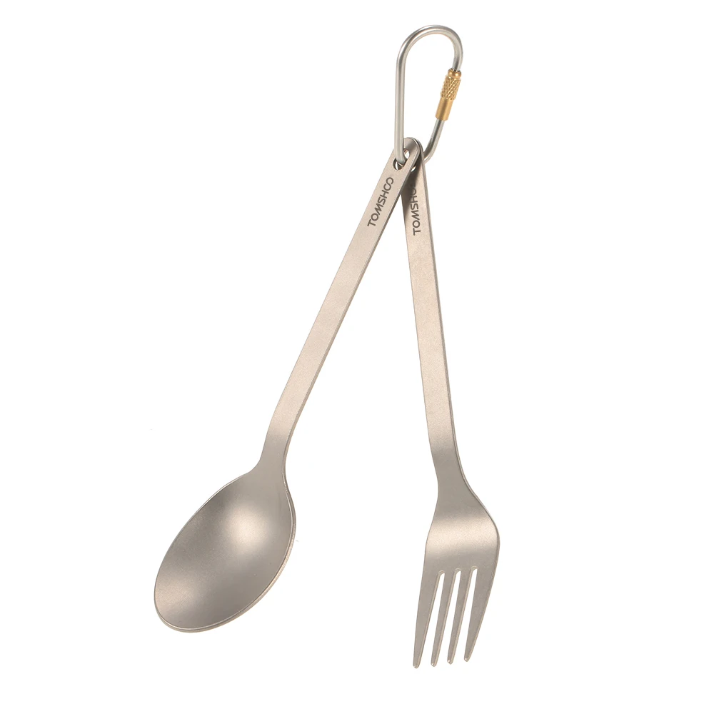 Столовые приборы TOMSHOO включают в себя ложку и вилку, изготовленную из титанового материала, стойкую к коррозии и долговечную. Идеально подходит для использования на открытом воздухе и дома.