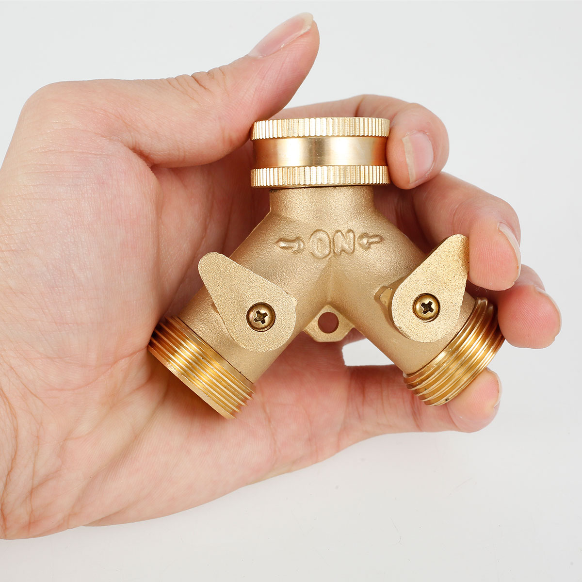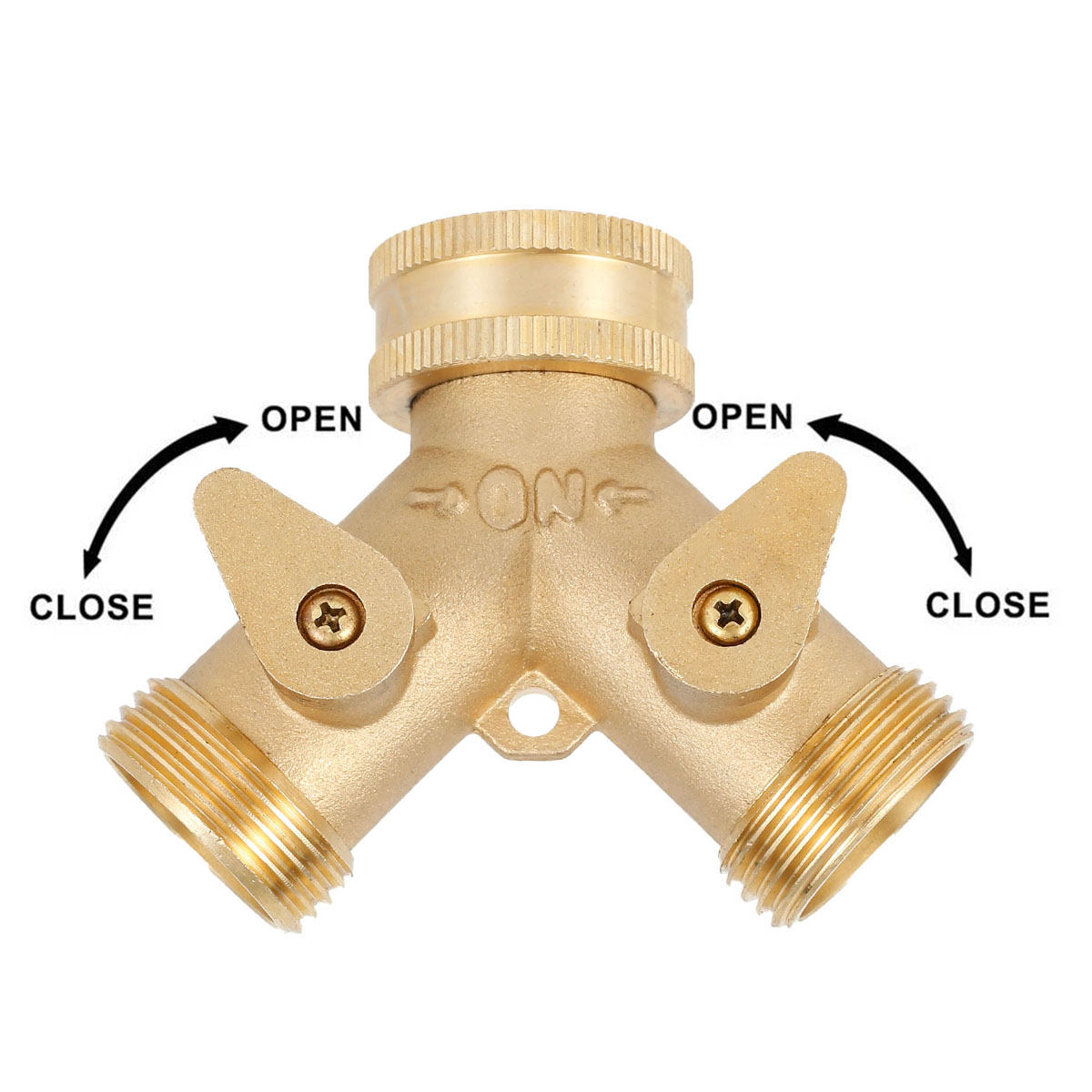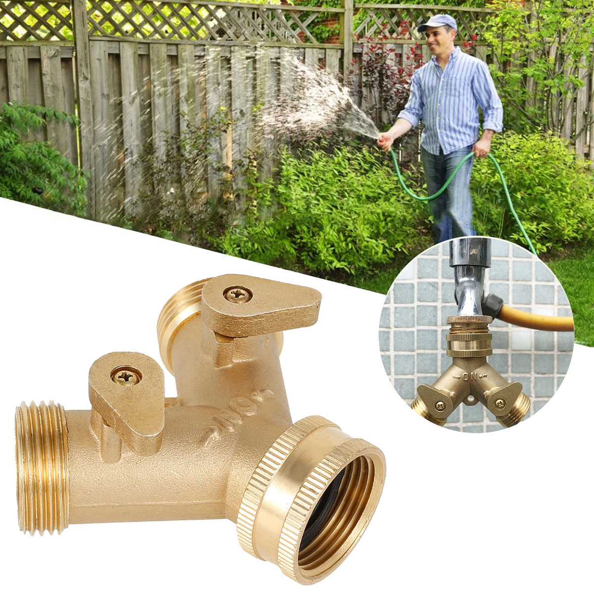 Переходник нарезной втулки шланга, с 2 клапанами, разветвитель шланга, 3/4 "Садовый соединитель шланга, 2 способа, твердая латунь, сверхмощный, для наружного использования, для использования в помещении