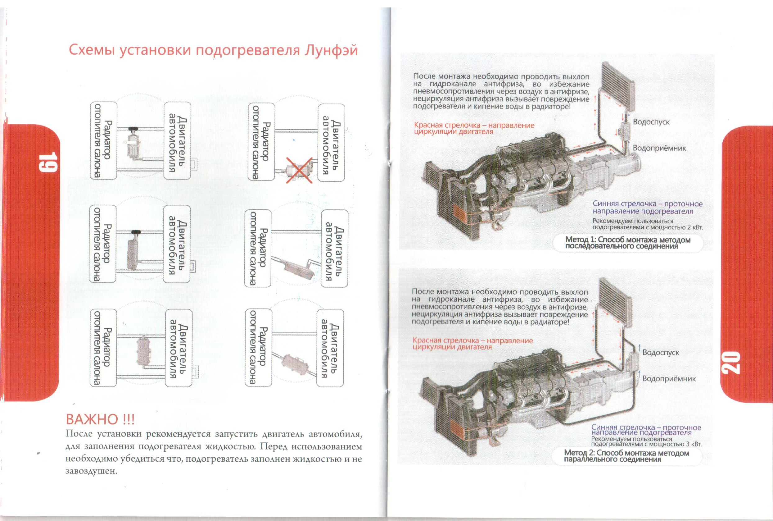 Уважаемый покупатель! Подогреватели находятся в ЗАПЕЧАТАННОЙ ЗАВОДСКОЙ упаковке, убедительная просьба ПРОВЕРЯТЬ товар в ОБЯЗАТЕЛЬНО заполненной системе (предварительного забора чистой воды из ёмкостей для этого предназначенных), перед непосредственной установкой в автомобиль.