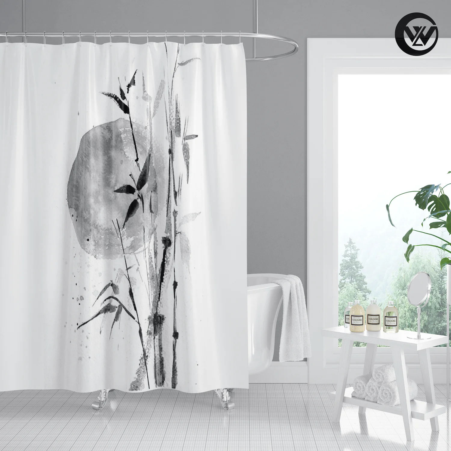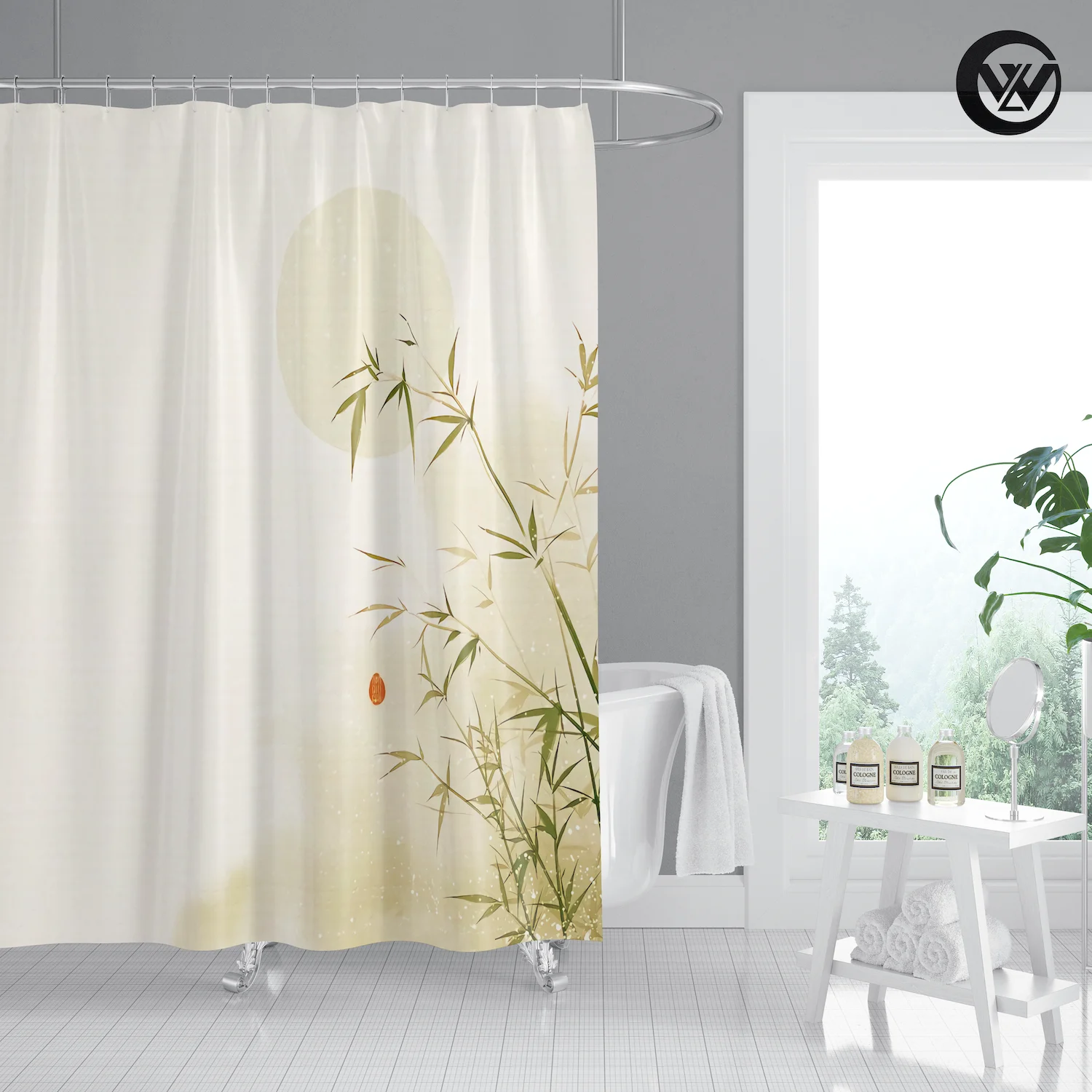 3. Printed with a unique pattern, drapes give a clean fresh look in your bathroom.