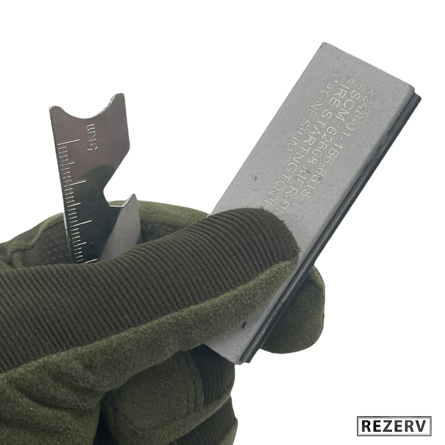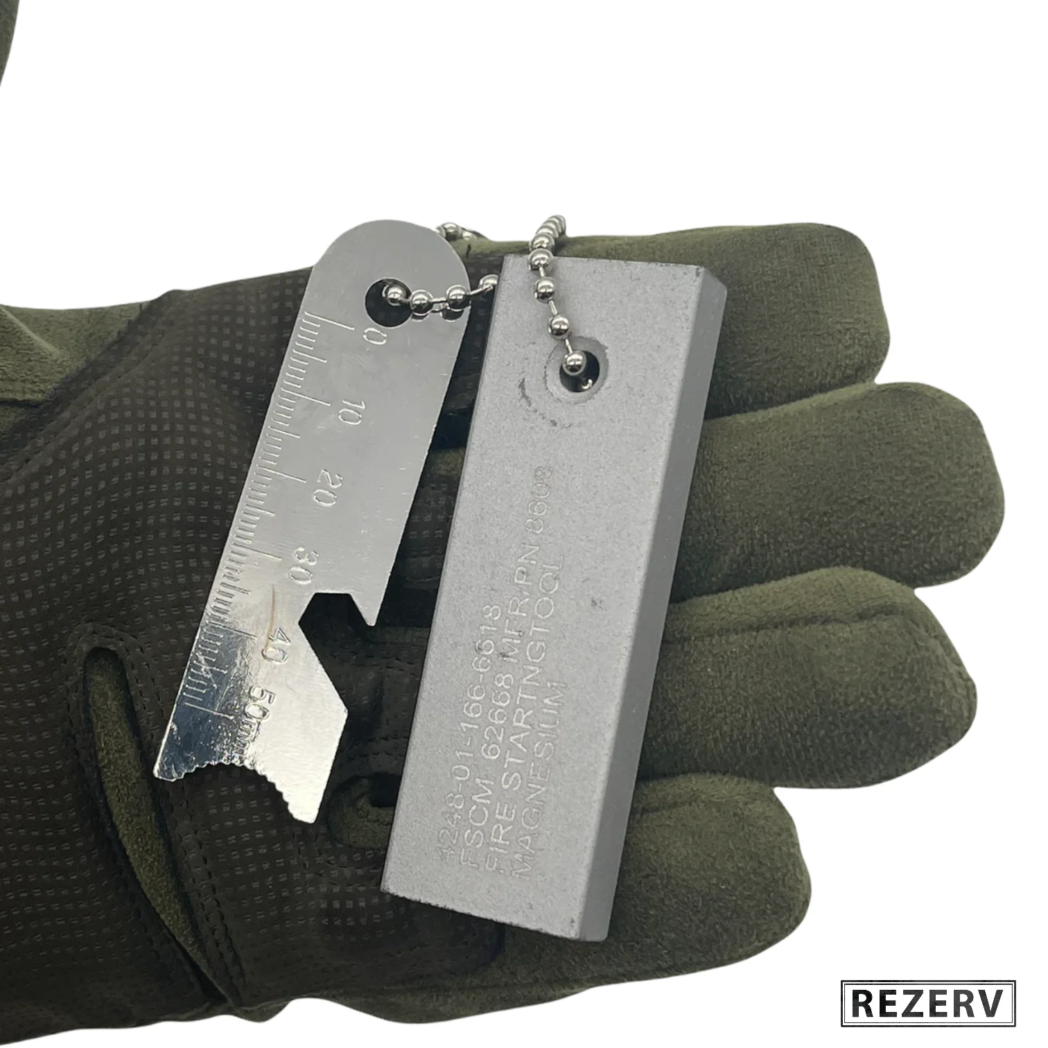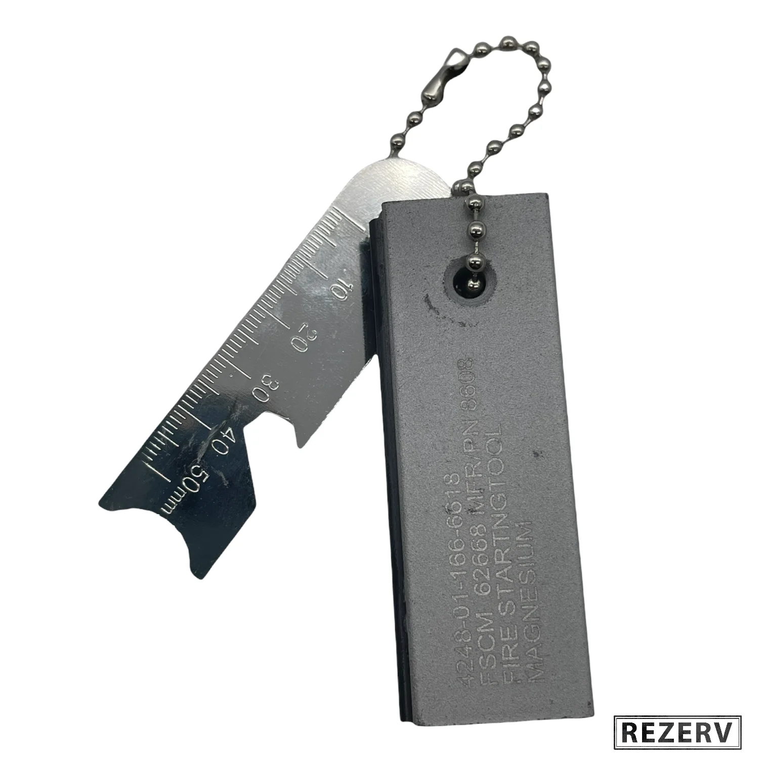 Многофункциональное кресало включает в себя: линейку 5 см., Масштабную линейку до 5 км., открывашку для бутылок и гаечный ключ.