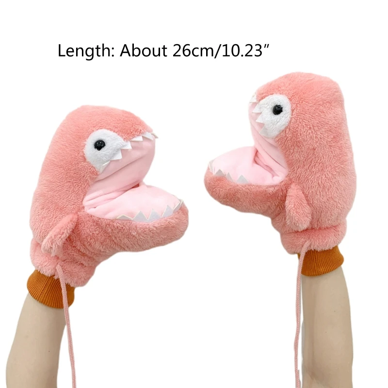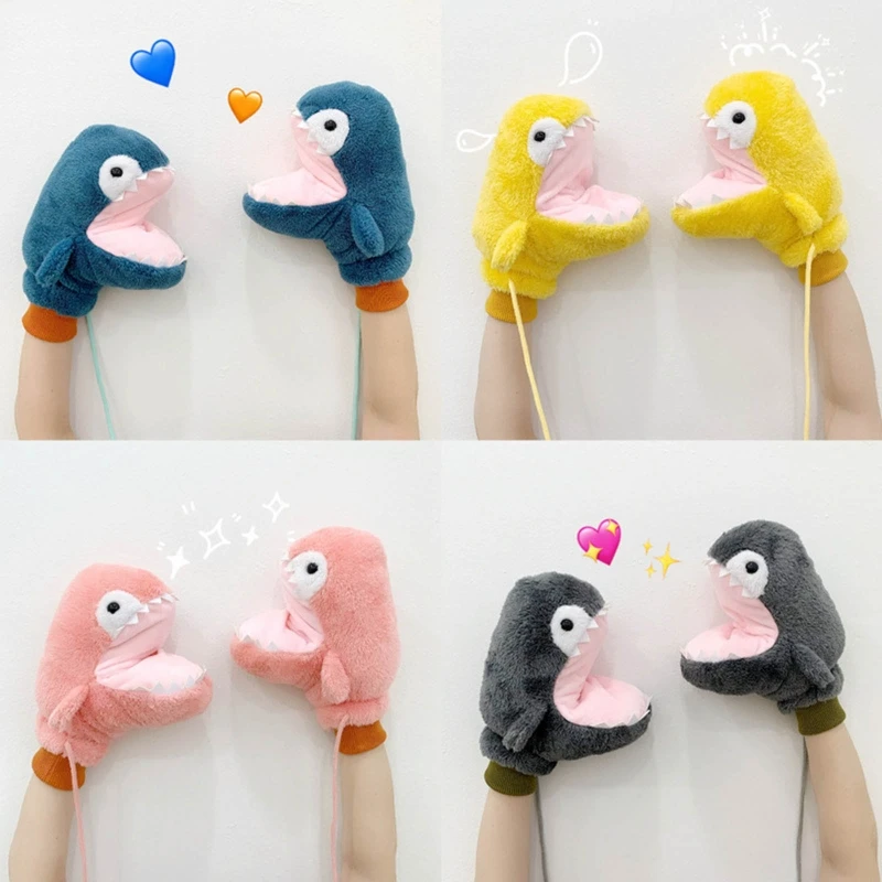 Плюшевые варежки, милые пушистые перчатки с акулой, с веревкой, Мультяшные животные, перчатки, зимние перчатки для катания, полный палец, варежки M6CD