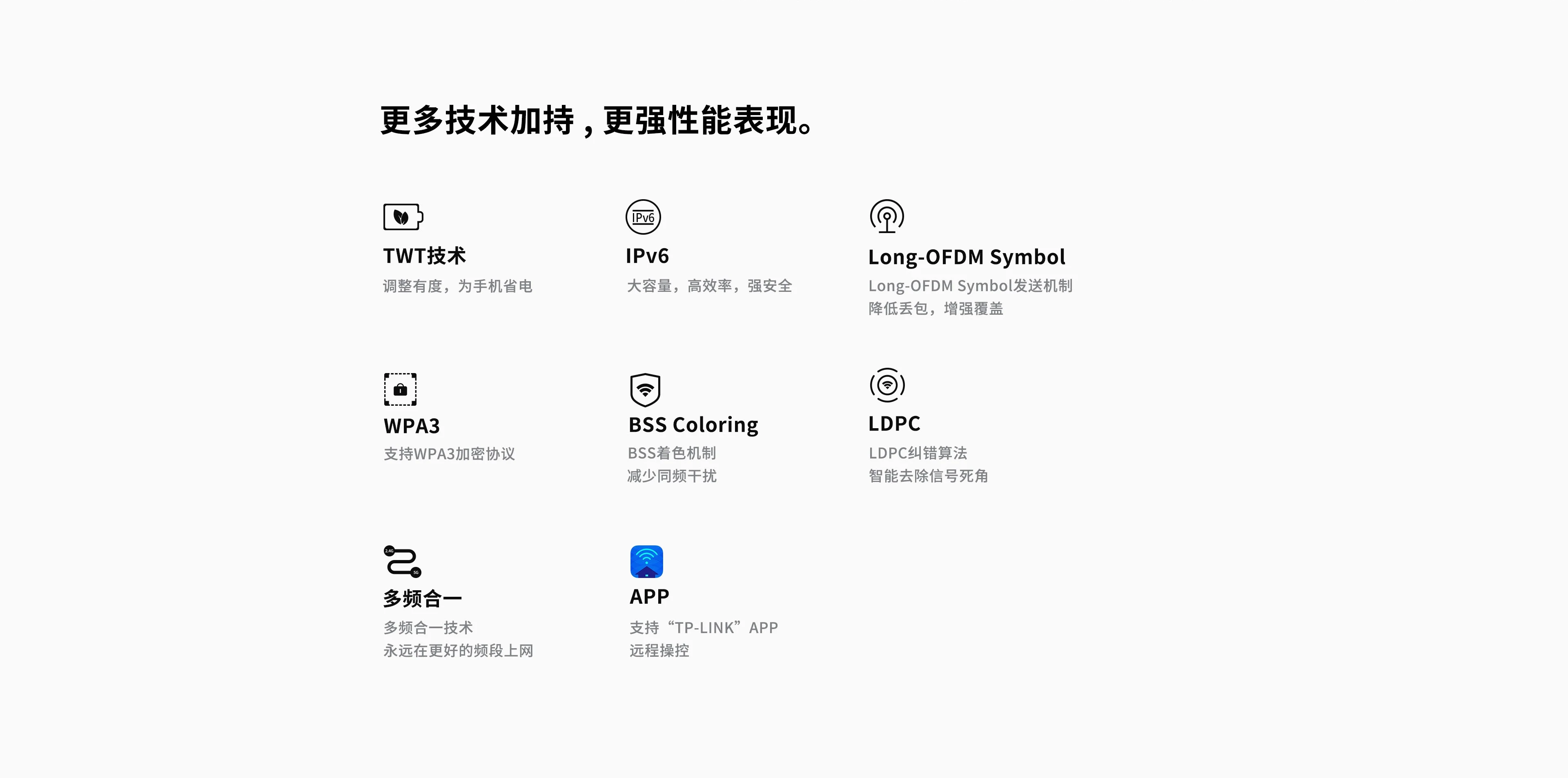 > Wi-Fi IEEE 802.11a/b/g/n/ac/ax протокол беспроводного доступа, что является самым высоким показателем Беспроводная скорость 5952 Мбит/с (2,4 ГГц 1148 Мбит/с) Wi-Fi 5 ГГц 4804 Мбит/с) beamforming 4 × 4 MU-MIMO WMM: приоритетная обработка данных и передача Wi-Fi многочастотная интеграция и простая разработка