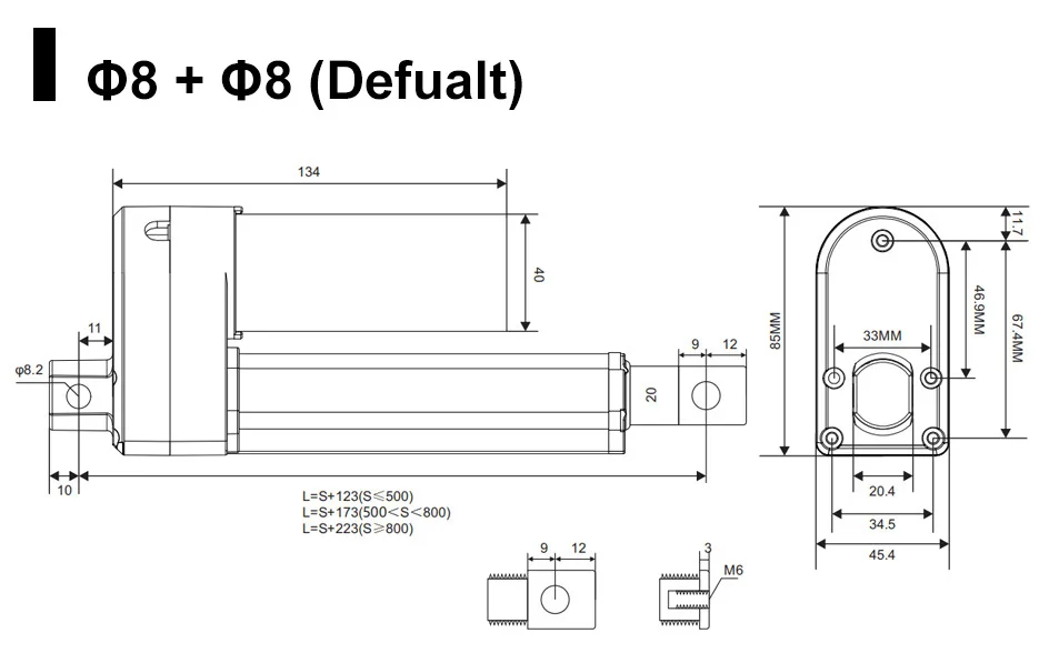 800mm Stroke Electric Linear Actuator With Position Feedback DC 12V 24V Motor Lift Telescopic Push Rod Medical Bed 3000N 66MM/STECHNICAL PARAMETERS: