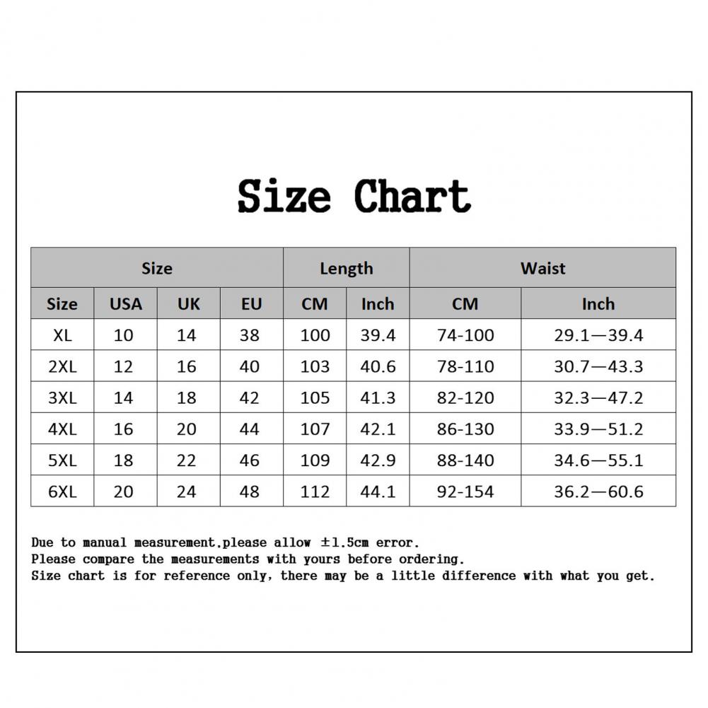 Размер: 6XL, обхват талии: 92-154 см/36,2-60,6 дюйма, обхват бедер: 130-154 см/55,1-60,6 дюйма, длина: 112 см/44,0 "(прибл.)