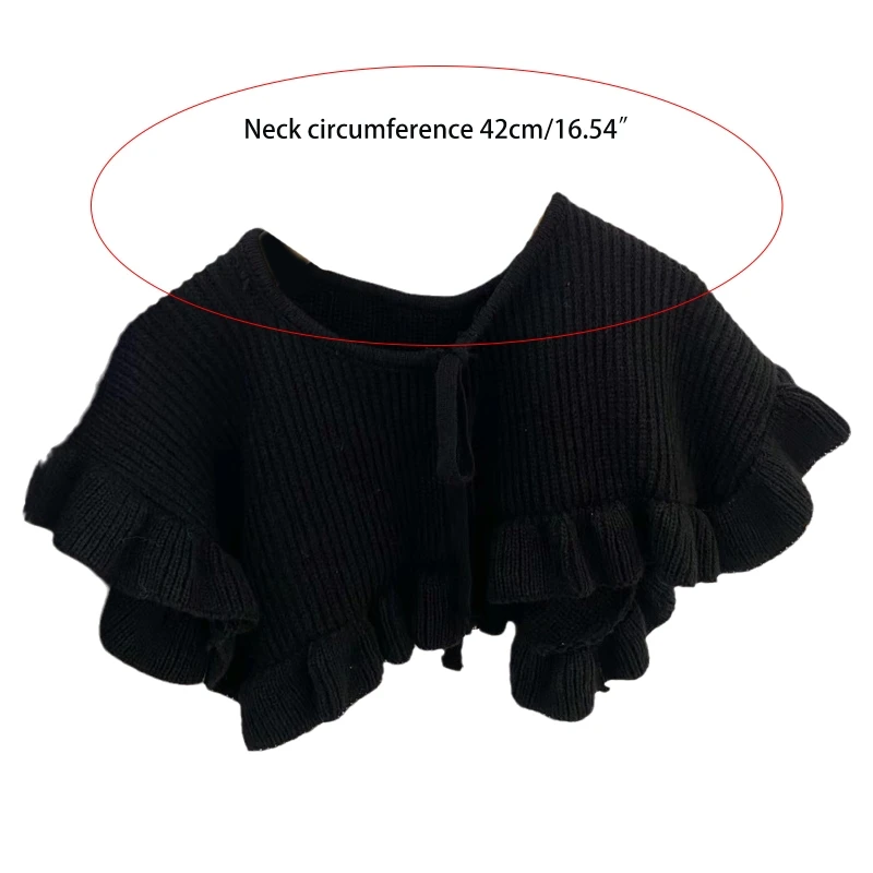 Корейский женский зимний свитер, шаль, накидка, сплошной цвет, вязаный крючком, на шнуровке, ложный воротник, шарф, гофрированная отделка, накидка