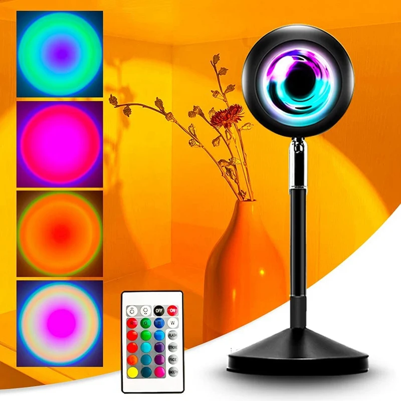 [Как использовать] Использование лампы захода солнца является простым, просто подключите usb-разъем к источнику питания и нажмите переключатель, чтобы включить светильник. Используя пульт дистанционного управления, вы можете выбрать идеальный цвет, который вам нравится. Размер круга, проецируемого на стене, может быть изменен путем регулировки расстояния между стеной и лампой. Закат светильник s проект удивительный закат красный круглый светильник на стенах, потолке и полу, который может принести реалистичный эффект заката.