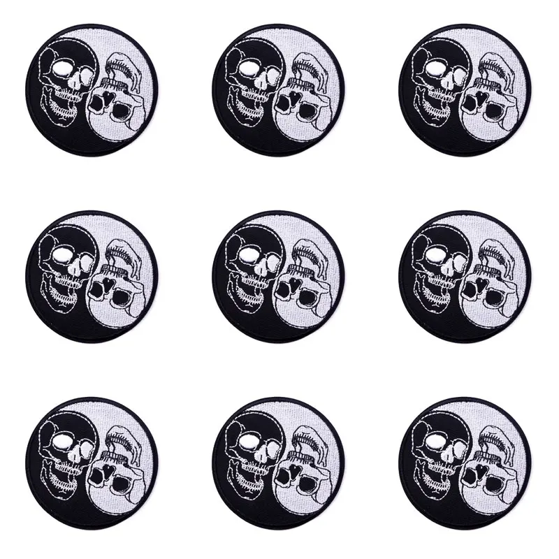 10 шт./лот, панковские нашивки с черепами, черные нашивки с вышивкой для одежды, нашивки в полоску, наклейки на одежду, Декор
