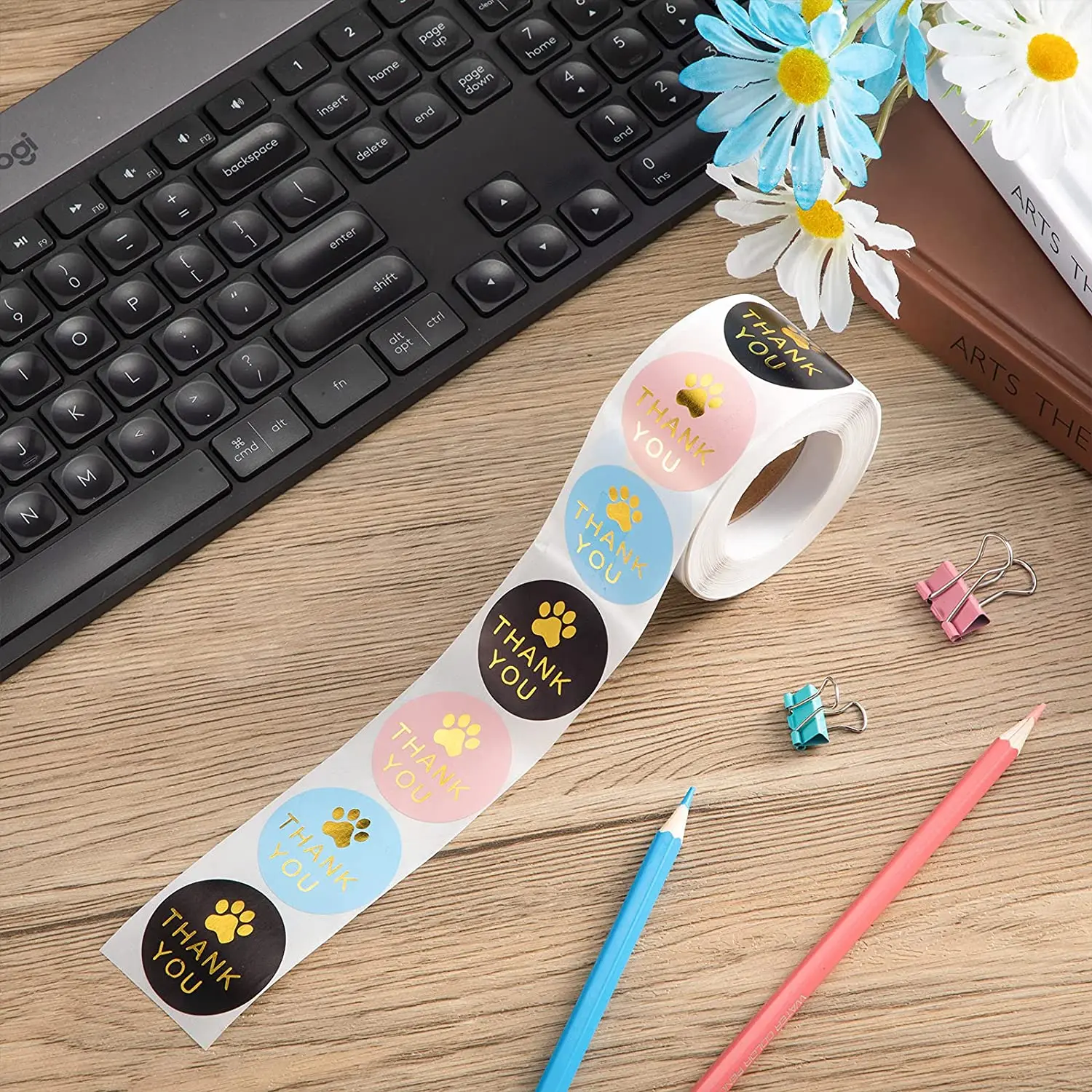 500 шт. следы лап Спасибо наклейки для 1,5 дюймов круглых наклеек золото Фольга самоклеящиеся этикетки для сумки карты посылка Декор