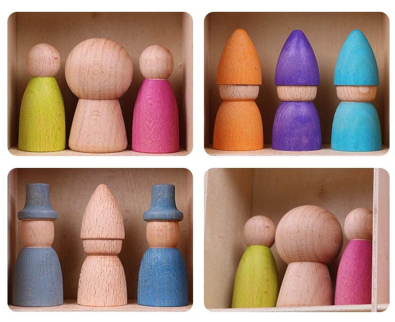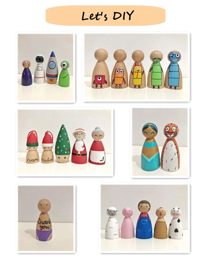 🍭Деревянные куклы-колышки изготовлены из безопасного и нетоксичного материала, мы выбираем Лучшие и безопасные материалы для защиты безопасности вашего ребенка. Помогите маленьким детям развить навыки координации рук и глаз; Распознавание цвета и формы.
